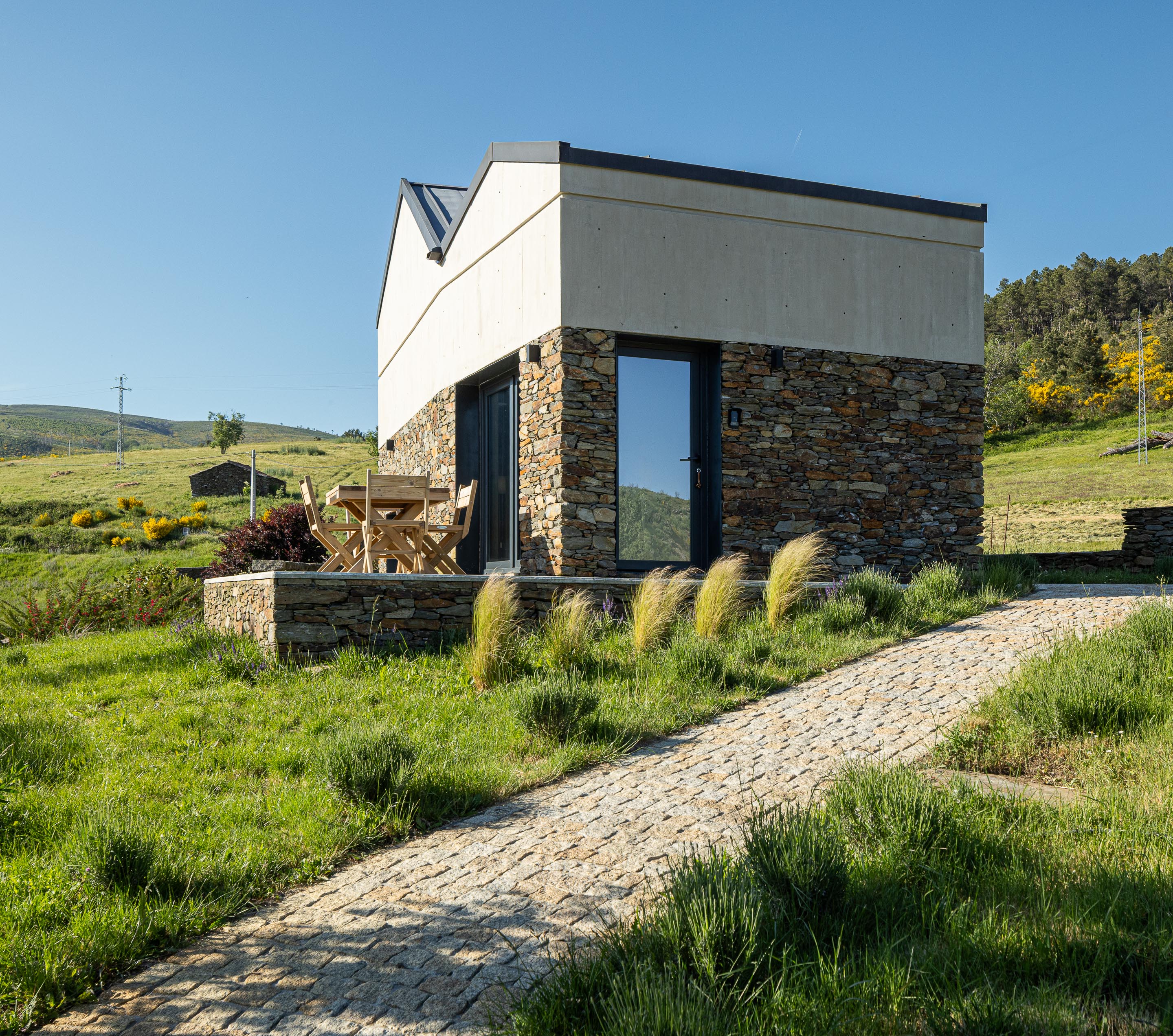 포르투갈 세라 다 에스트렐라 자연공원의 깊숙한 산자락, 광활한 하늘과 광물성 풍경이 맞닿는 지점에 테라센스 마운틴 참 리트리트가 자리한다. 이 프로젝트는 오랫동안 방치되어 있던 두 채의 기존 건물을 되살려, 단순한 숙박 시설을 넘어 ‘머무는 경험’ 자체를 제안하는 산악 리트리트로 재구성한 사례이다. 설계는 폐허를 복원하는 데서 그치지 않고, 장소가 지닌 시간과 기억을 현재의 건축 언어로 다시 엮어내는 데서 출발했다.