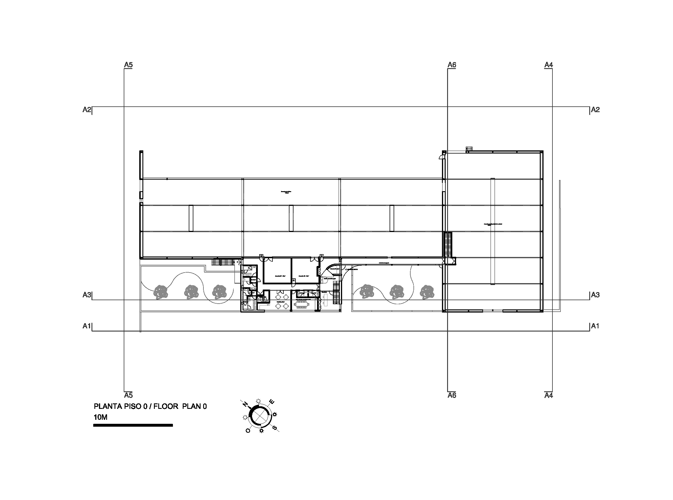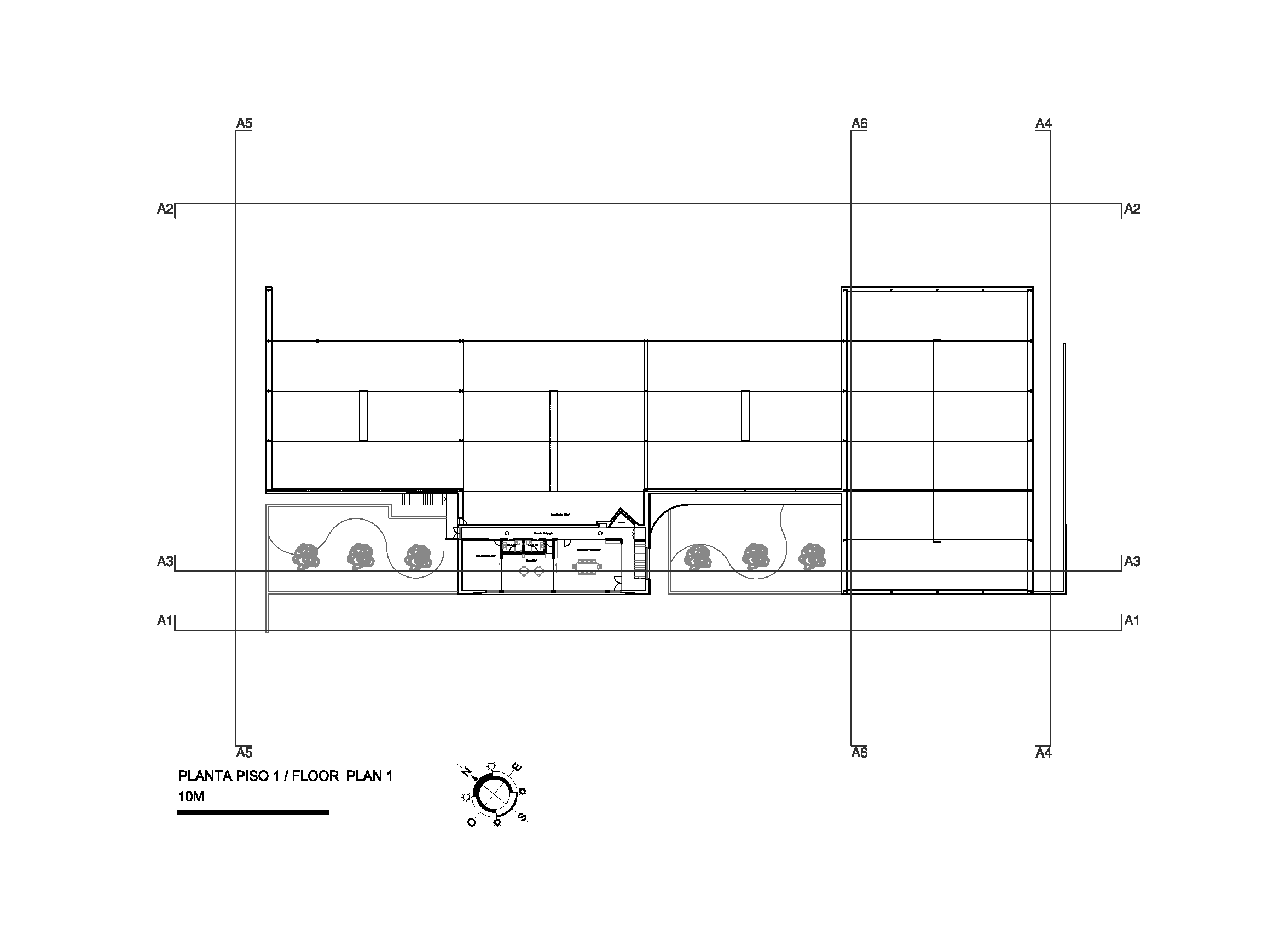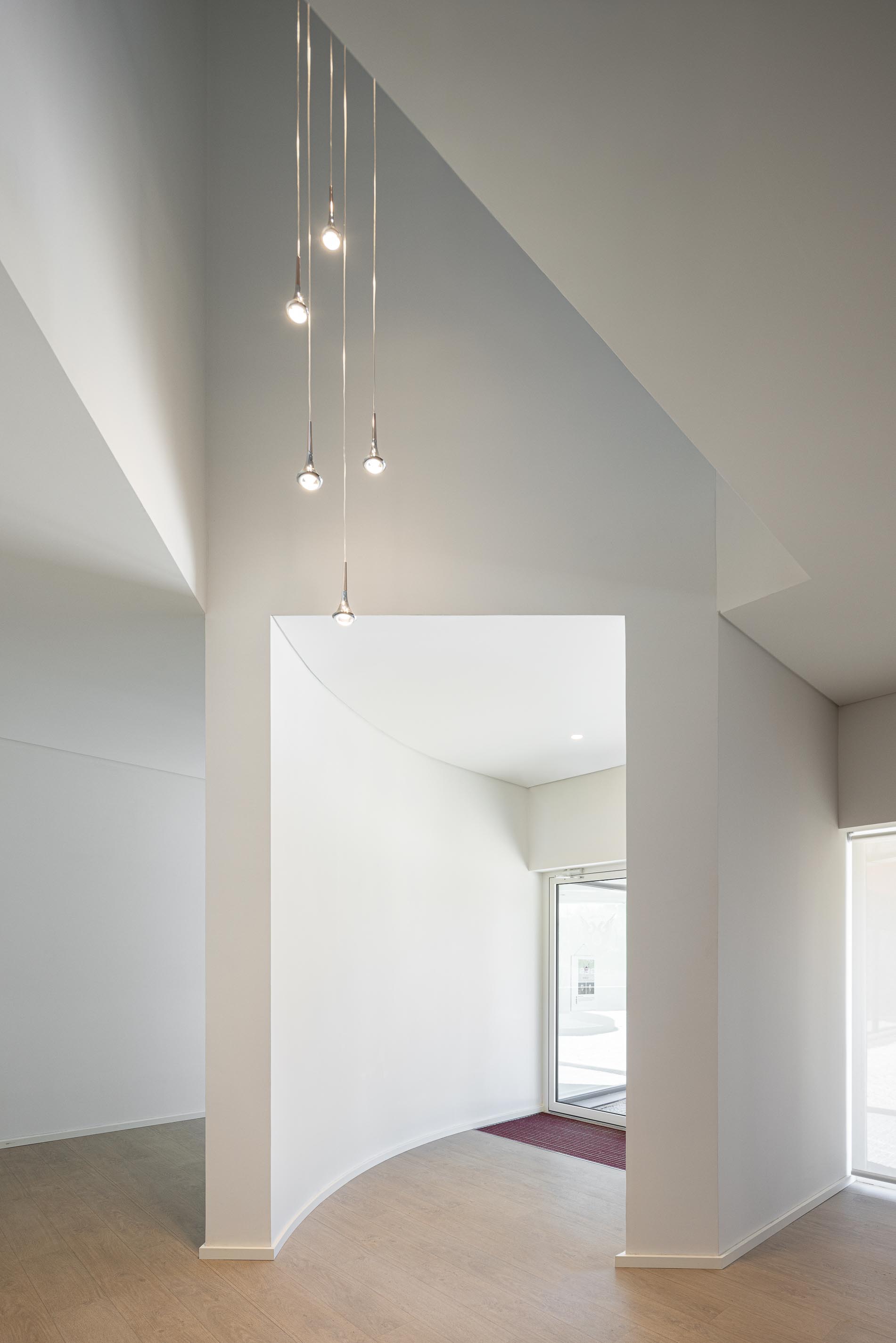 대지는 북쪽에서 남쪽으로 완만하게 경사진 지형을 지닌다. 건축은 이 자연 경사를 따라 배치되며, 부지 중앙에 축을 형성해 건물을 지면과 수평선 사이에 균형 있게 놓는다. 북측에서는 건물이 부분적으로 지면에 묻혀 보다 안정적으로 보이고, 남측에서는 약간 상승하며 자연 환기와 가벼운 매스 인식을 가능하게 한다. 이러한 배치는 기능적 요구와 풍경적 맥락을 동시에 만족시킨다.