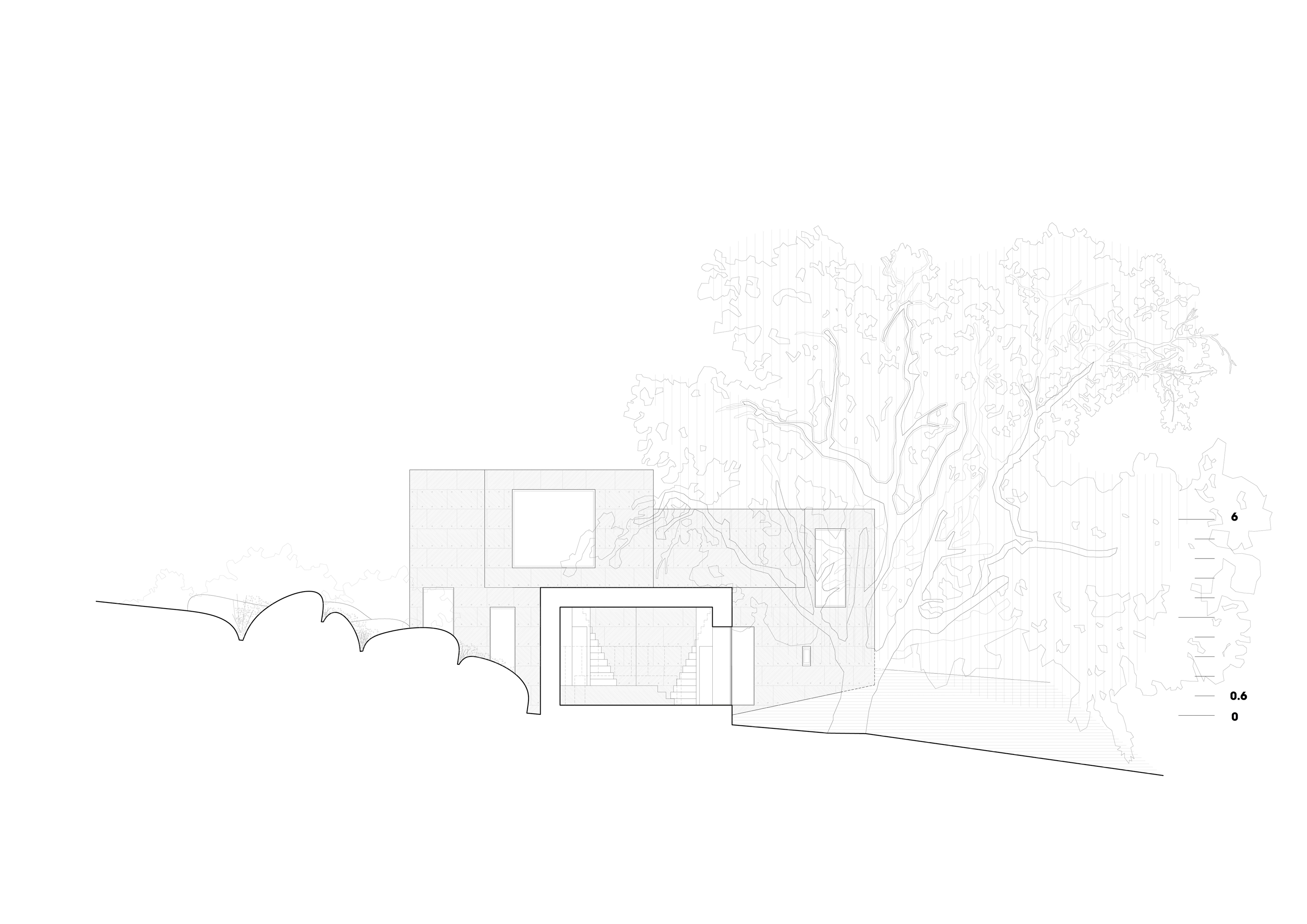House X는 풍경 위에 얹힌 객체가 아니라, 그 일부로 자리 잡으려는 건축이다. 화강암 바위와 나무 사이에 깊숙이 고정된 이 집은, 자연을 배경으로 삼지 않고 스스로 하나의 암석처럼 존재한다. 이 주택은 풍경을 점유하는 방식에 대한 질문이자, 건축의 지속성과 존재 방식에 대한 하나의 제안이다.