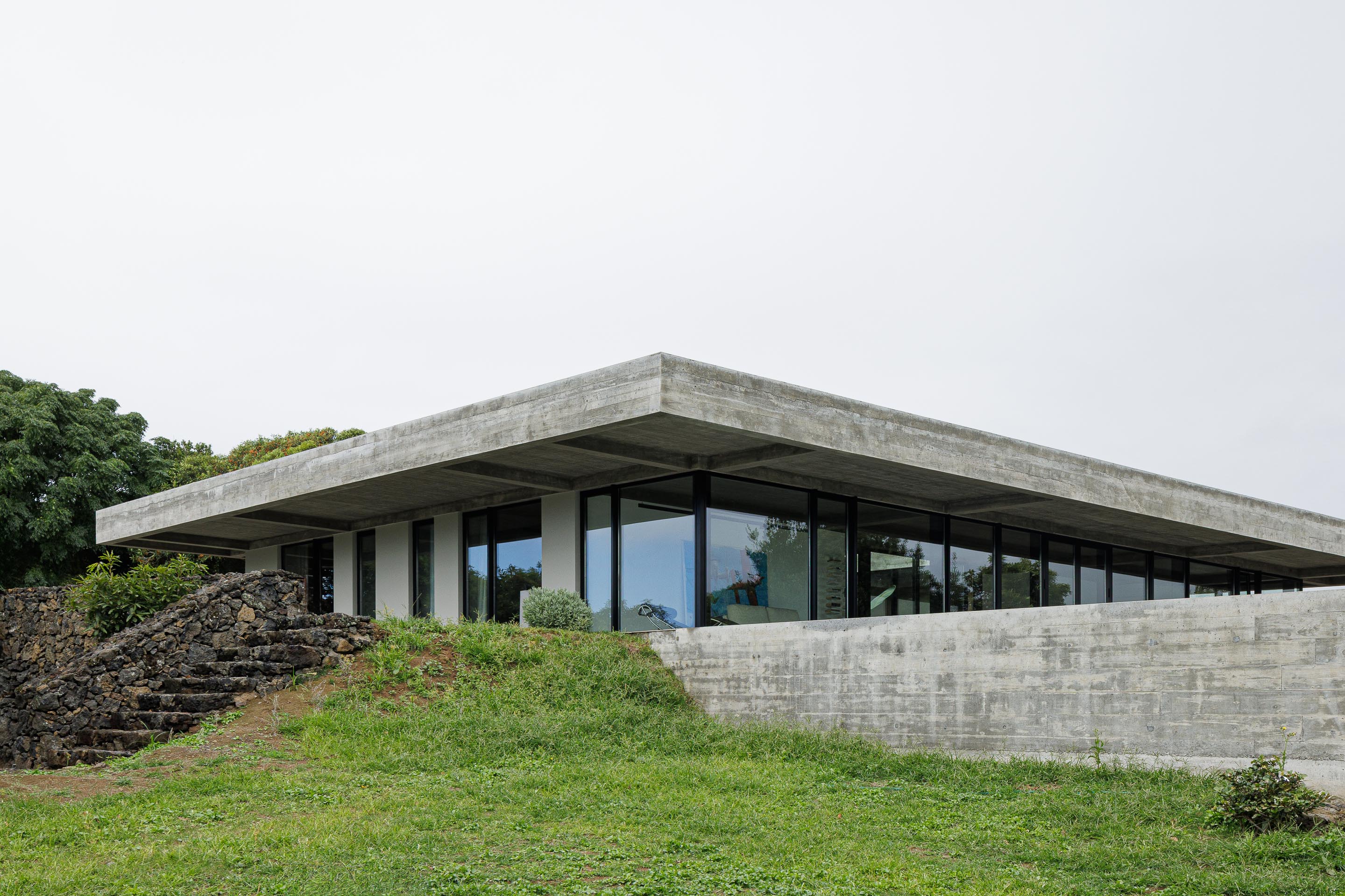 대지는 현무암 바위와 건조한 식생, 불규칙한 지형으로 이루어진 해안 풍경 위에 놓여 있다. 집은 그 사이에 가볍게 내려앉는다. 전체 매스는 하나의 큰 날개처럼 펼쳐지며, 주변 지형 위를 부유하듯 자리 잡는다. 이 ‘날개’의 이미지는 자연스럽게 도출되었다. 집주인이 과거 식민지 전쟁 시기 공군 조종사였다는 개인적 이력이 설계의 은유로 이어졌기 때문이다. 건축은 과거의 기억을 과장하지 않고, 절제된 형태 안에 담아낸다.