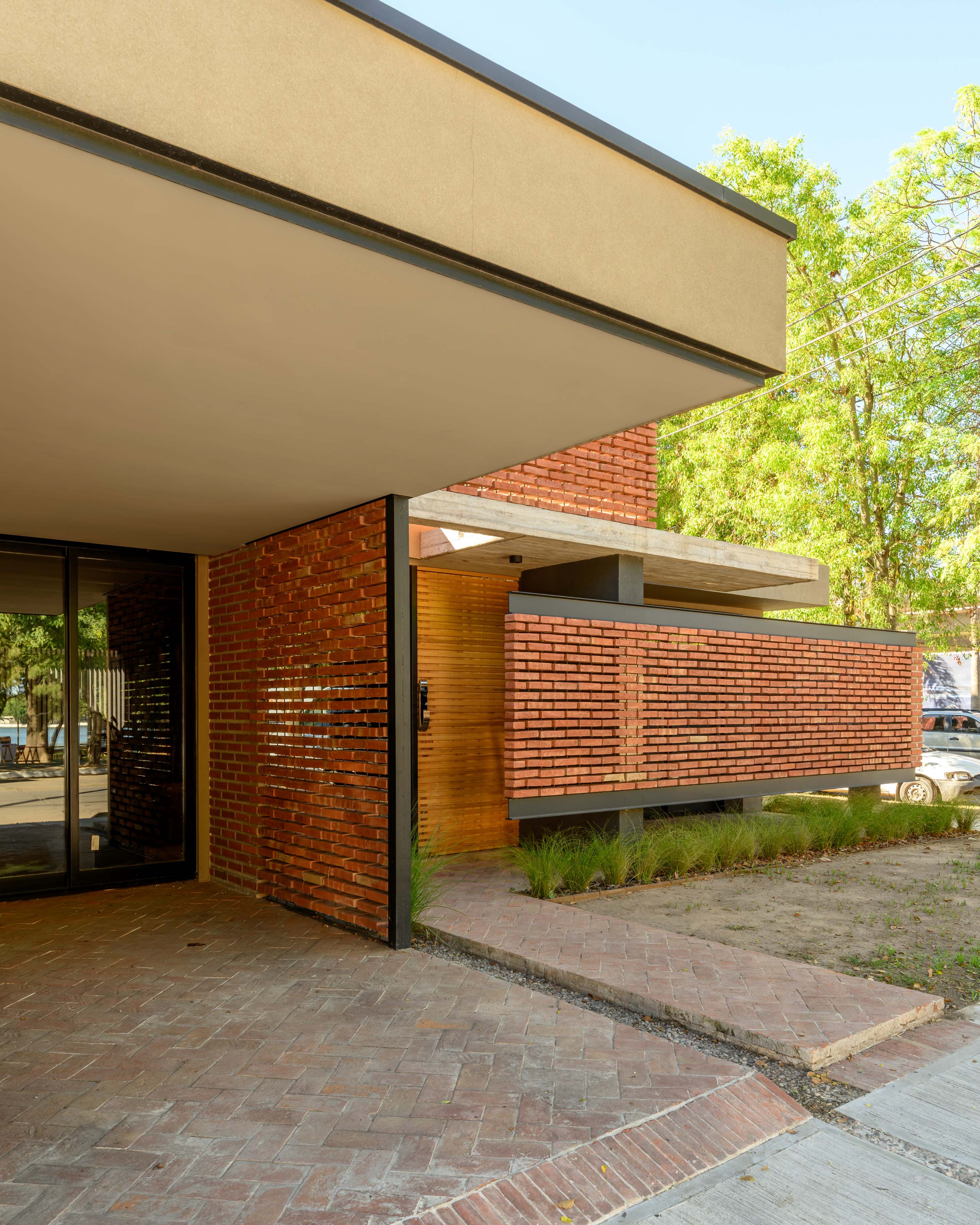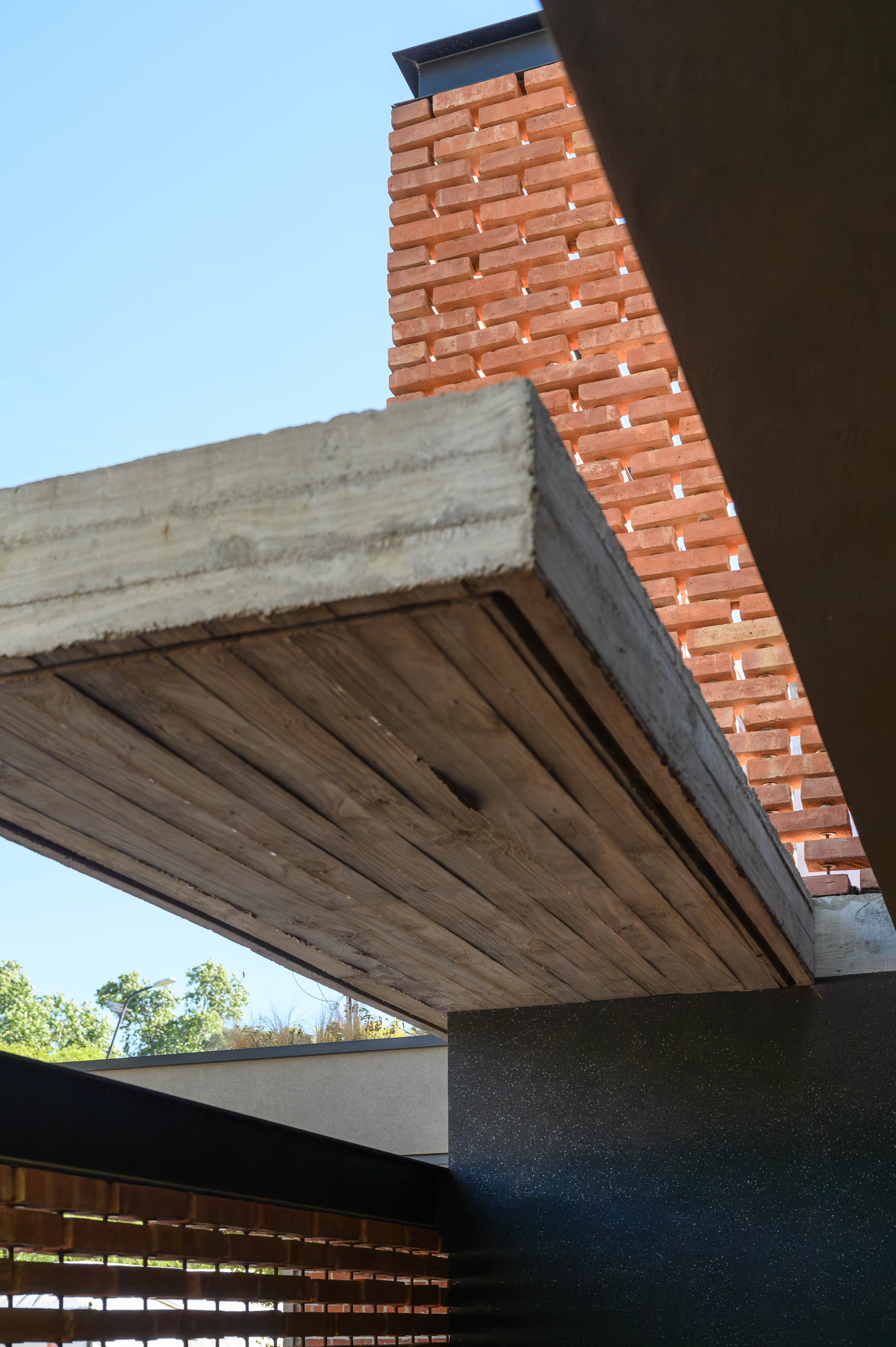 프로젝트는 지역 맥락에 대한 분명한 태도를 드러낸다. 설계는 아르헨티나의 현실적 조건과 가용 자원에 기반해 이루어졌다. 특히 벽돌은 코르도바 지역 건축 문화에 깊이 뿌리내린 재료이다. 이 프로젝트는 벽돌을 해체하지 않고, 그 논리를 전복했다. 독립된 철골 구조에 매달린 벽돌은 더 이상 하중을 지지하는 모놀리식 벽이 아니다. 벽돌은 구조체로부터 분리되며 공간의 경계를 재정의한다.