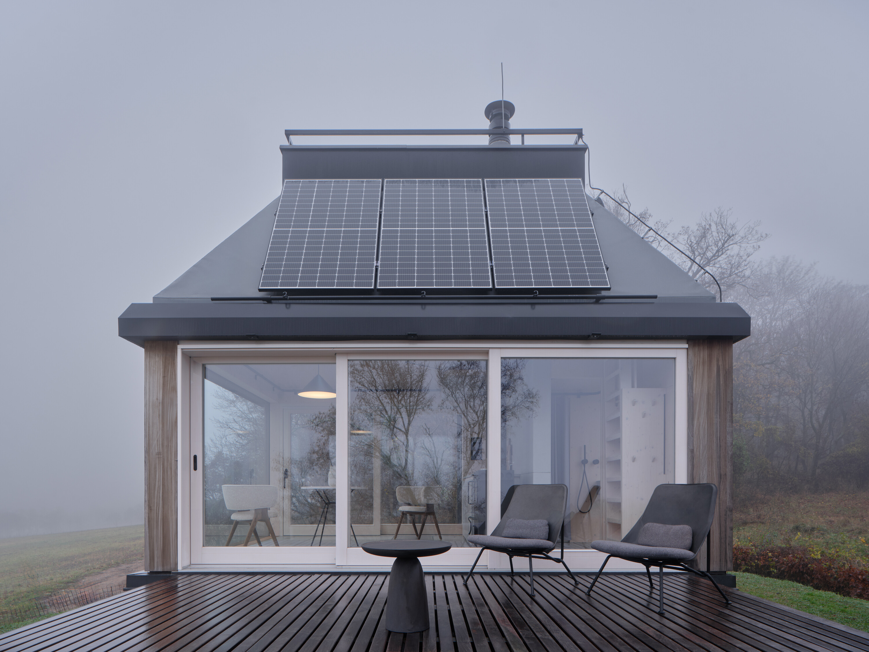 이 캐빈은 감성적으로뿐 아니라 기술적으로도 독립된 주거이다. 사계절 운용이 가능한 완전한 오프그리드 시스템을 갖추었다. 에너지 개념은 태양광 패널과 배터리 저장 시스템, 그리고 가스 백업 시스템의 조합으로 구성된다. 배터리 잔량이 일정 수준 이하로 떨어지면 고출력 장치는 자동으로 가스로 전환된다. 조명과 소형 기기는 전기를 우선 사용하고, 난방·냉방 등 고에너지 장치는 자원 상황에 따라 유연하게 작동한다.