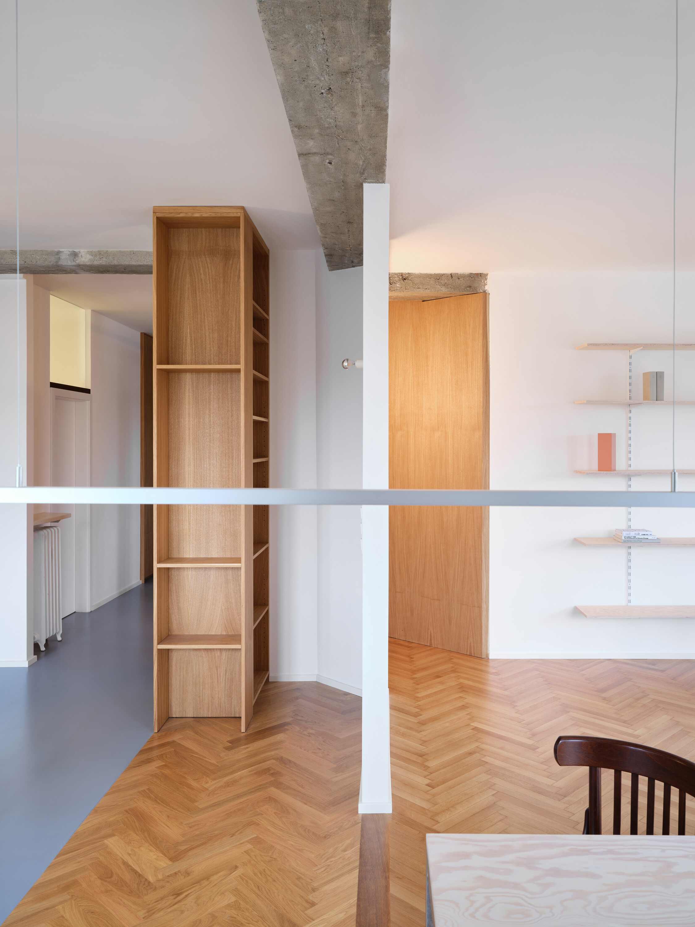 Corner Apartment는 과거를 재현하려는 시도가 아니다. 대신 기존 구조와 재료의 시간을 존중하면서, 현대적 생활 방식에 맞는 명확한 개입을 더한다. 절제된 재료 사용, 구조적 요소의 재해석, 기능적 재배치가 균형을 이룬다. 1930년대의 맥락은 지워지지 않고, 오히려 새로운 층위를 덧입은 채 현재와 공존한다.