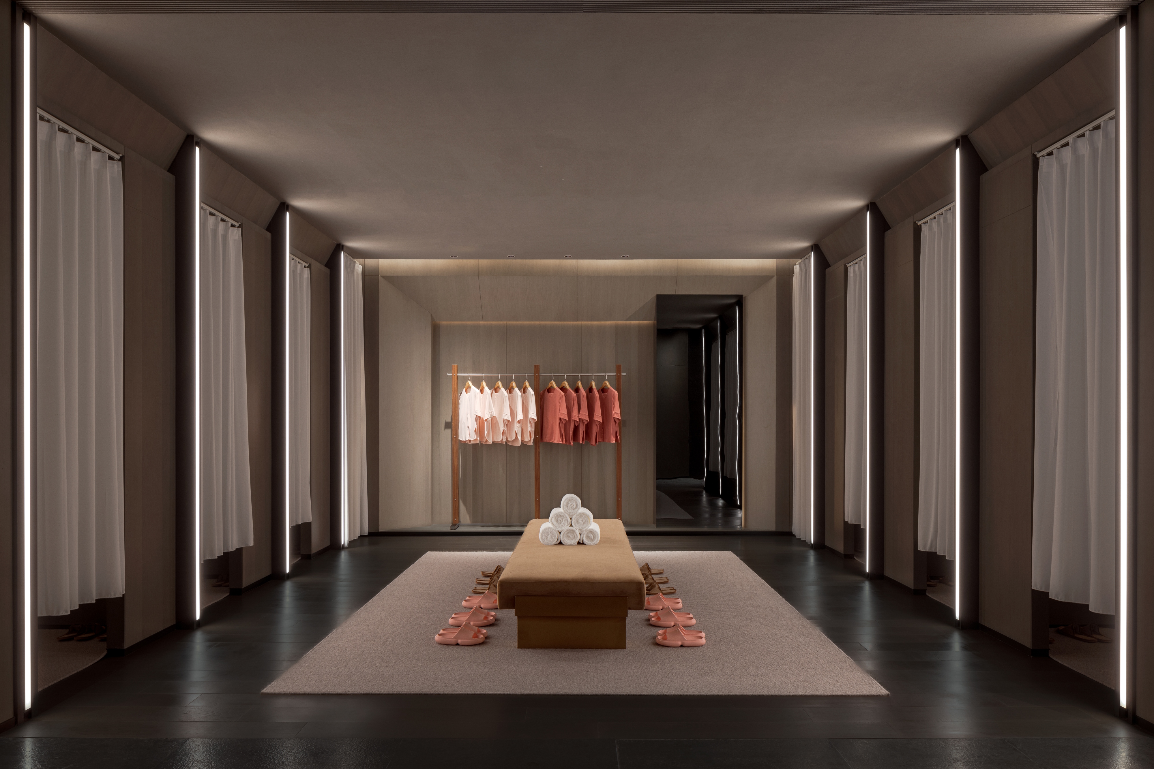 프로젝트 전반에는 산과 물의 형상이 일관되게 이어진다. 외부에서 내부로 이어지는 동선은 흐름을 끊지 않으며, 열린 공간과 장중한 벽체가 교차하는 구성은 시간의 밀도를 느리게 만든다. 이는 빠른 도시 환경과 대비되는 체류의 경험을 의도한다.