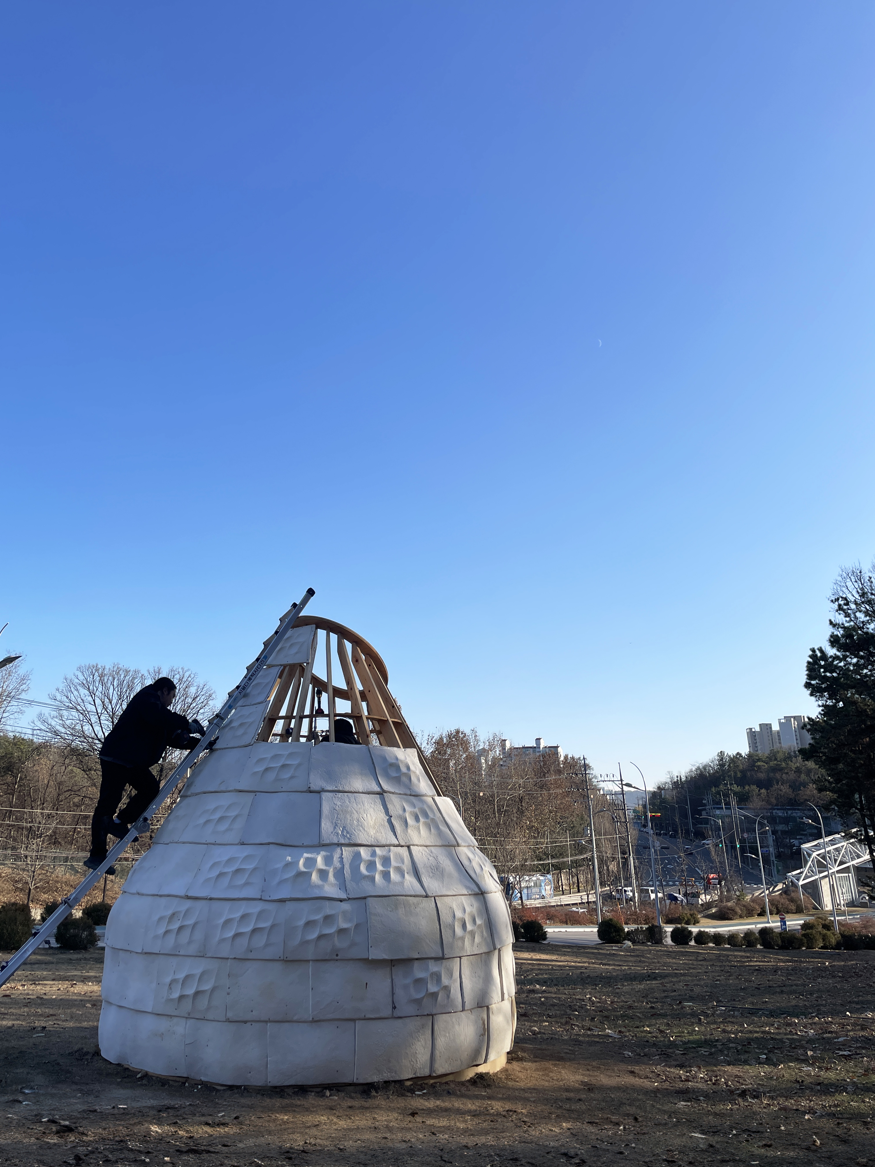 서울과학기술대학교 캠퍼스에 설치된 이 파빌리온은 기존 곰팡이 응용 기술이 지닌 한계를 넘어, 균사체 기반 건축의 실질적 적용 가능성을 실험한다. 이는 단순한 재료 실험을 넘어, 일상 속에서 친환경 건축의 새로운 개념을 체험하도록 하는 물리적 제안이기도 하다.