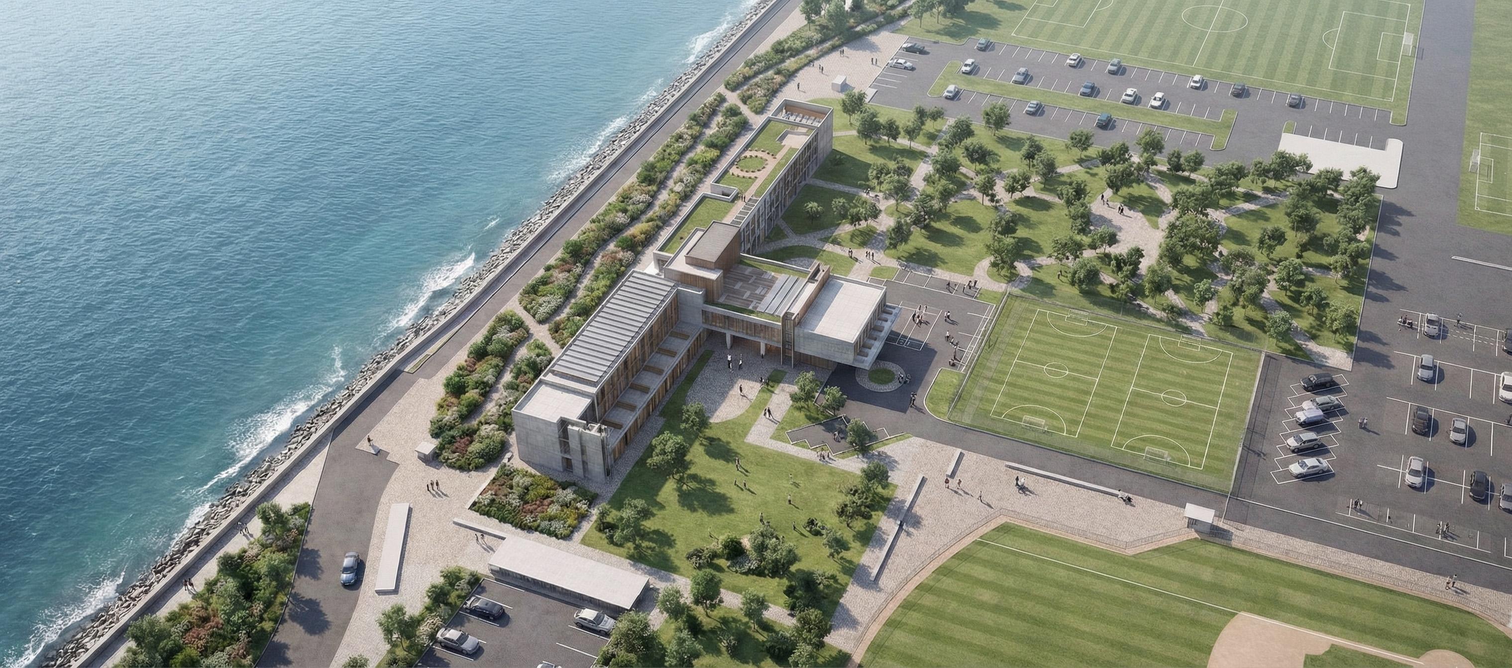 이는 주변 경관의 연속성을 훼손하지 않으면서도, 건축물이 대지의 일부로 동화되도록 유도한 결과입니다.
