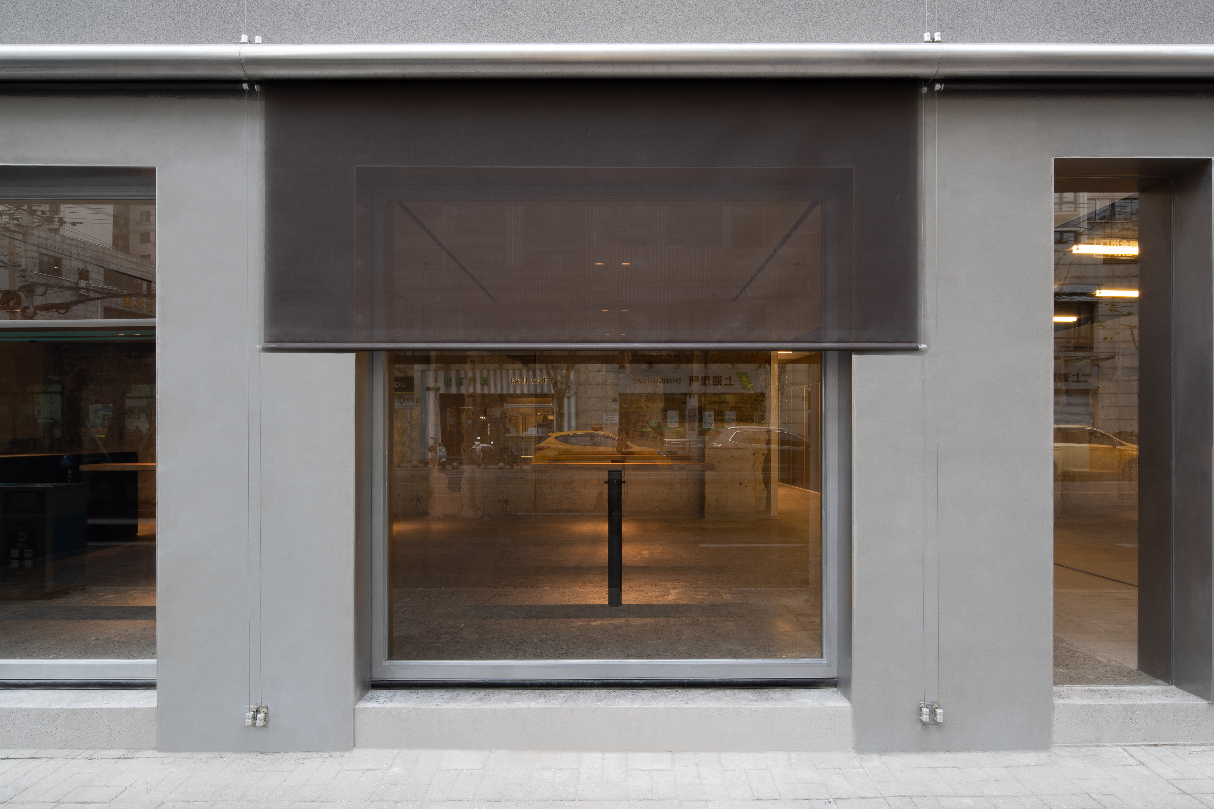 3층 규모 건물의 외벽에는 짙은 회색의 외부 차양 커튼 시스템이 추가되었으며, 트랙과 설비는 스테인리스 파이프로 감싸 마감했다. 수평으로 배치된 스테인리스 파이프는 입면에 패턴감을 부여한다. 2층과 3층 내부에는 창문 가까이 조명을 설치했다. 차양 커튼이 내려오면 건물은 어두운 베일에 싸인 듯한 모습이지만, 커튼이 올라가고 창의 조명이 켜지면 전혀 다른 느낌의 입면이 만들어진다. 이러한 조합은 단조로웠던 기존 입면을 끊임없이 변화하는 도시 풍경으로 전환한다.