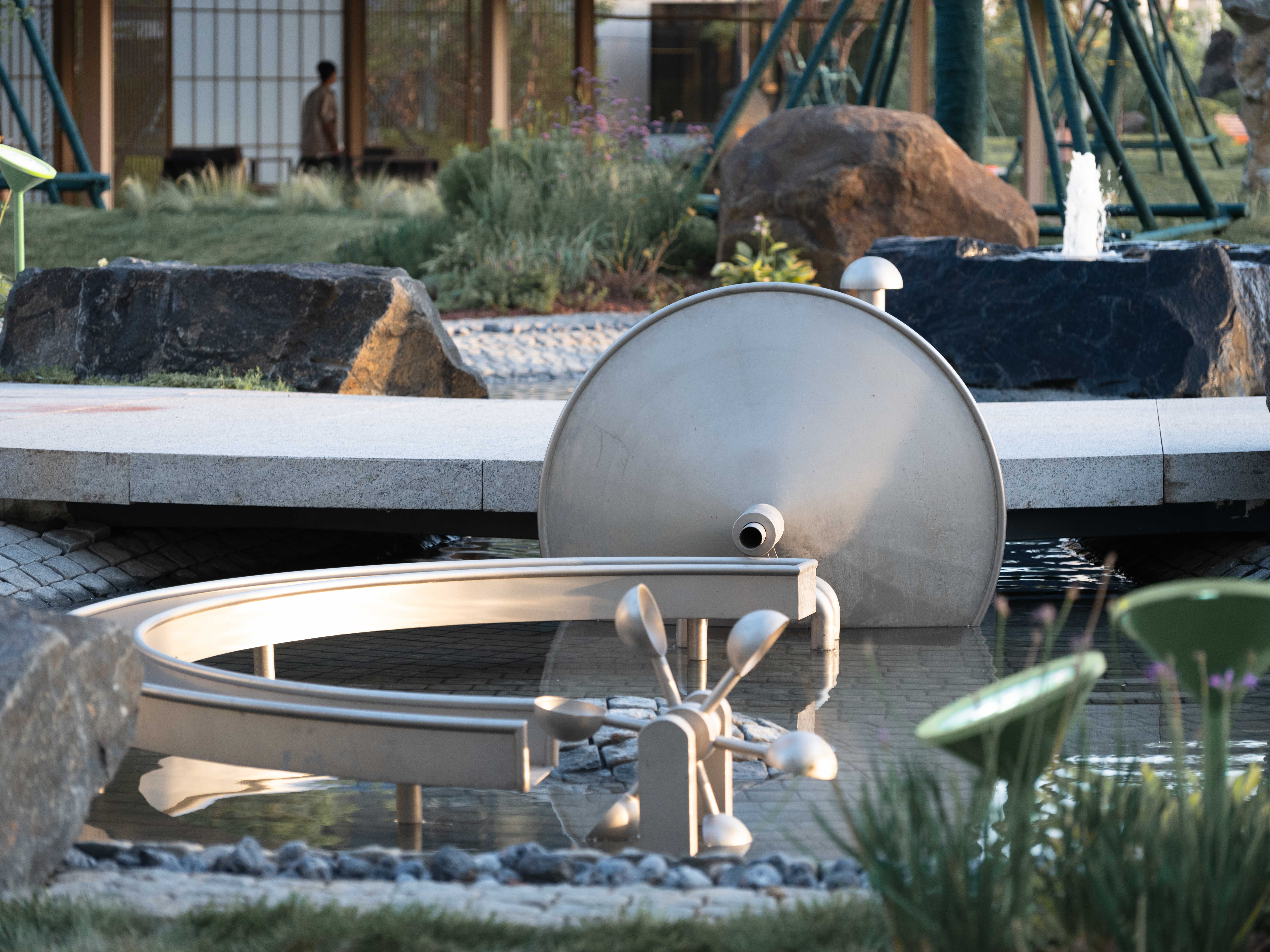 워터 가든은 완만한 흐름의 수로를 중심으로 자연과 조화를 이루는 수공간이다. 분수와 점핑 수공간, 회전형 수장치, 펌프와 압력 장치 등 다양한 요소가 결합되어 연령별로 다른 방식의 체험을 제공한다. 물과 바람을 탐색하는 놀이 과정은 어린이의 호기심을 자극하며, 자연과의 관계를 경험하도록 한다.