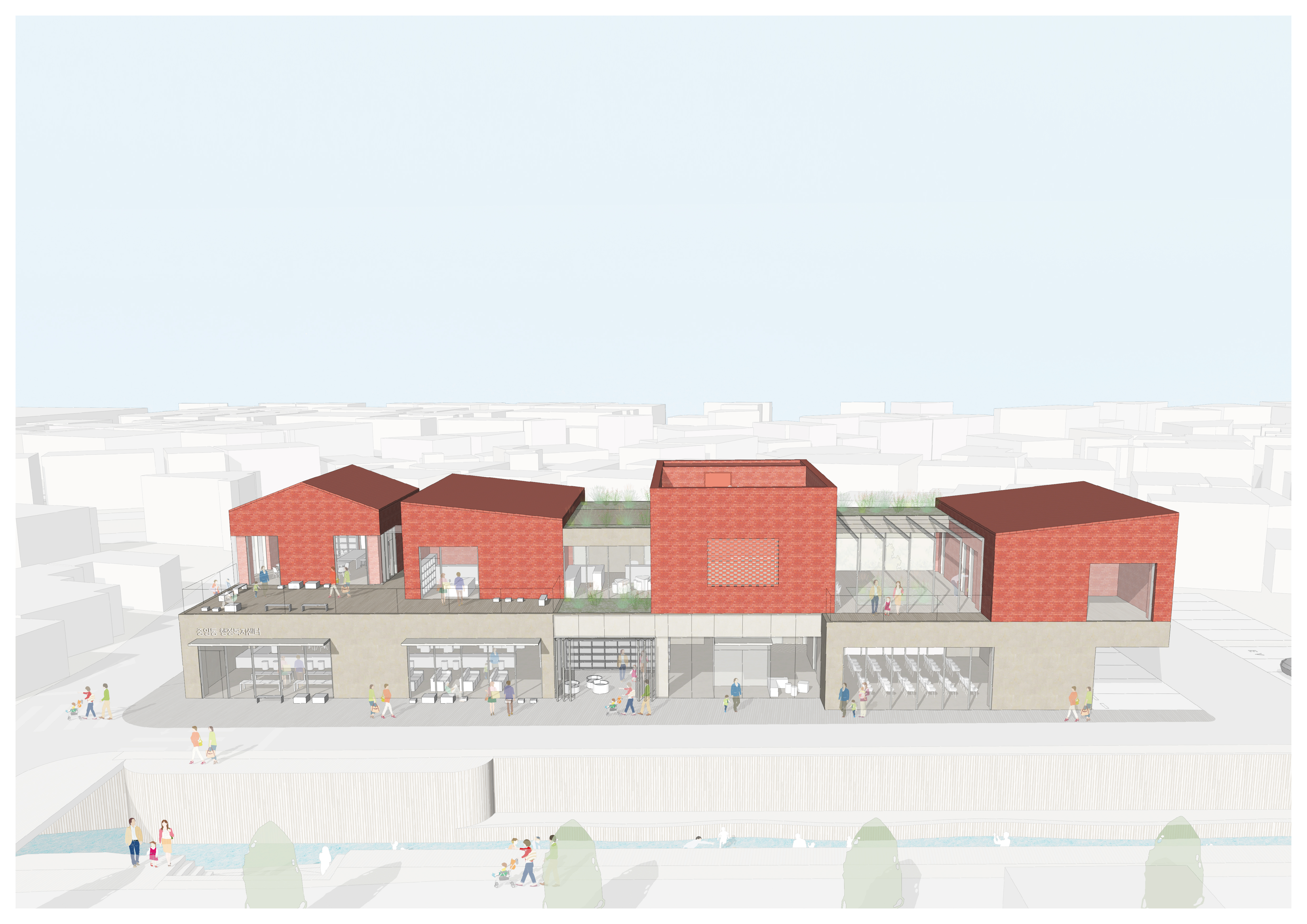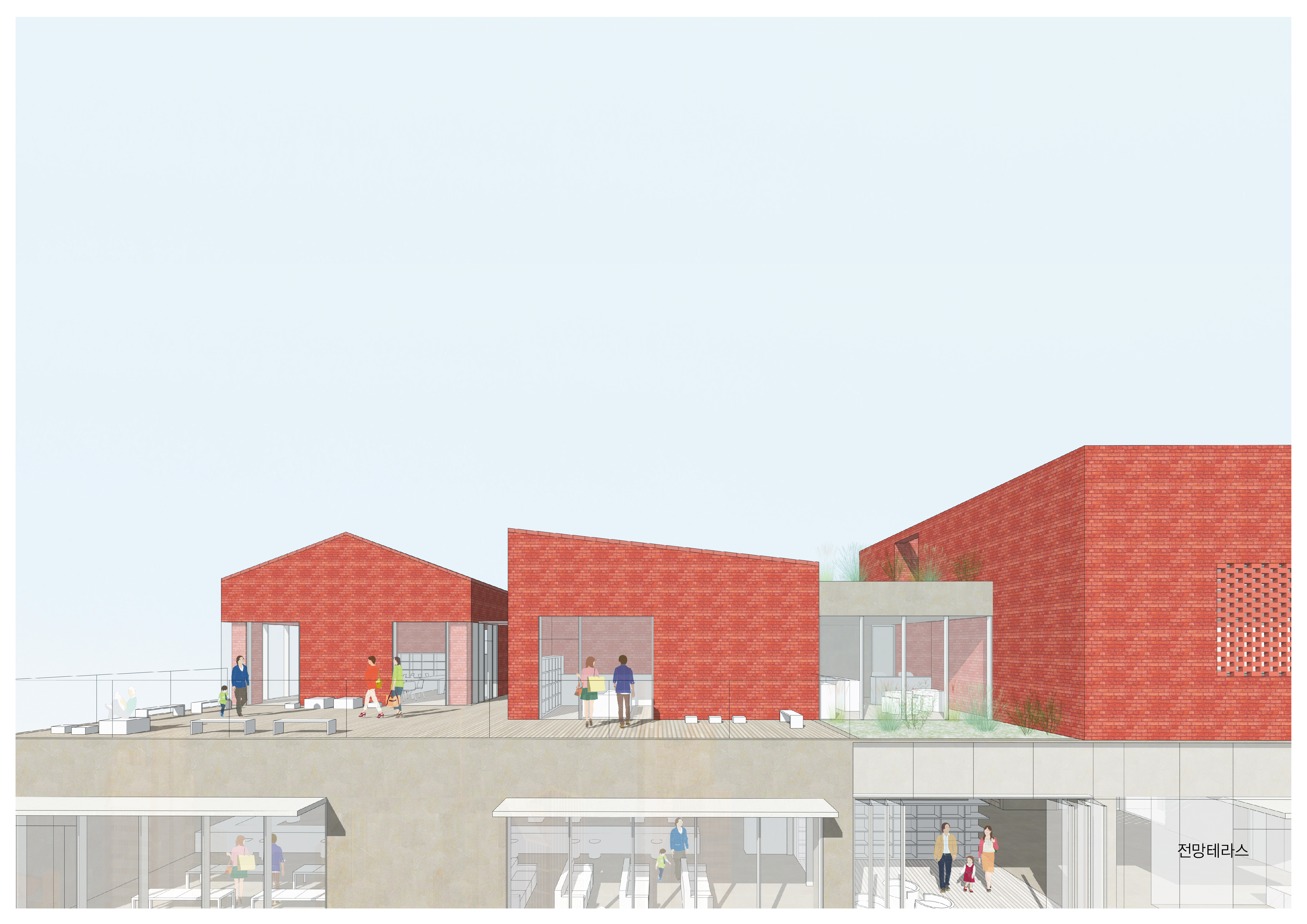 수평적인 스카이라인의 파사드와 크고 작은 테라스를 통해 지역에 친근한 공공건물을 완성한다. 주민을 위한 다양한 클래스와 이벤트를 제공하고, 자발적인 교류의 장소가 되고자 한다.