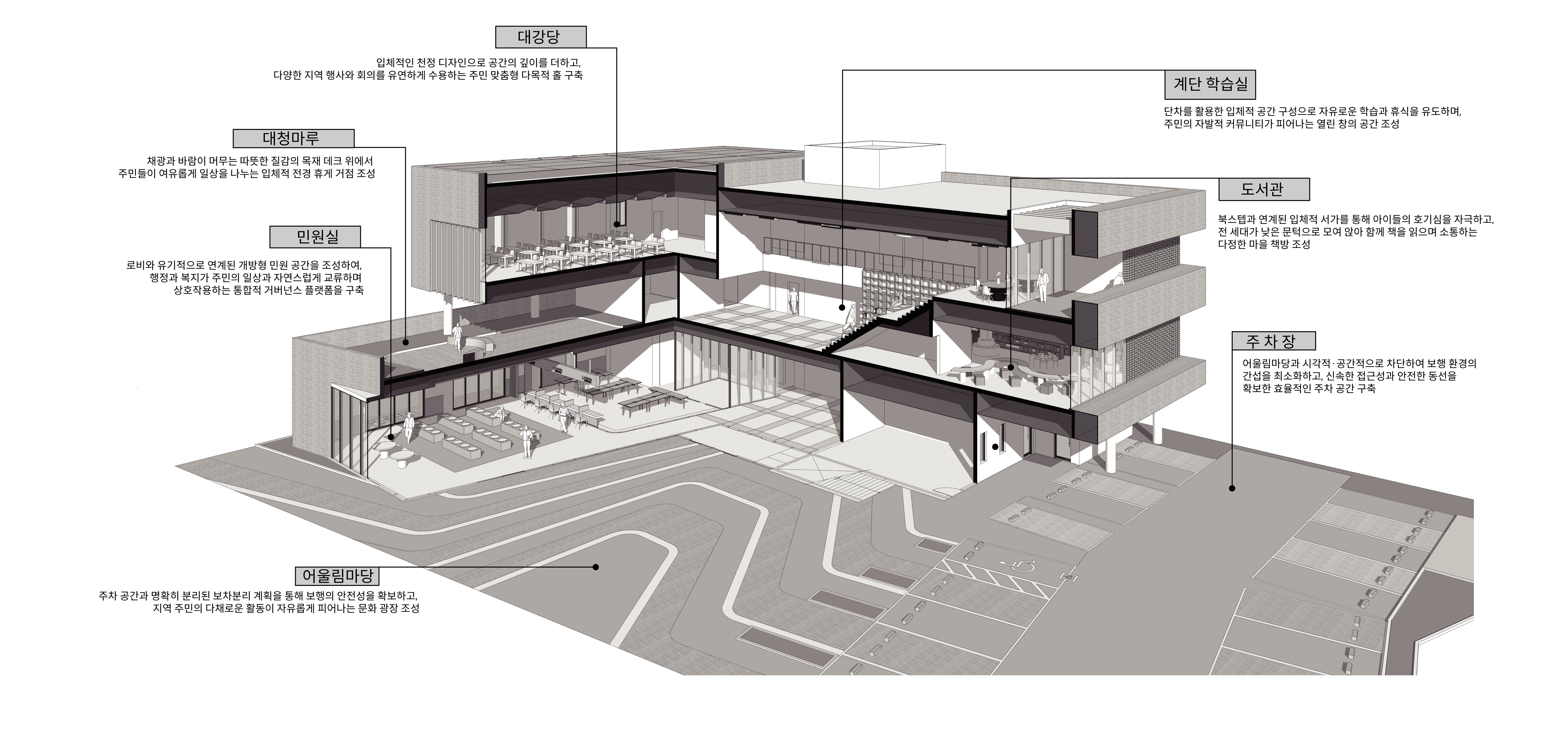 단순한 행정 업무 공간을 넘어, 주민들이 머물고 즐길 수 있는 문화 거점을 지향합니다.