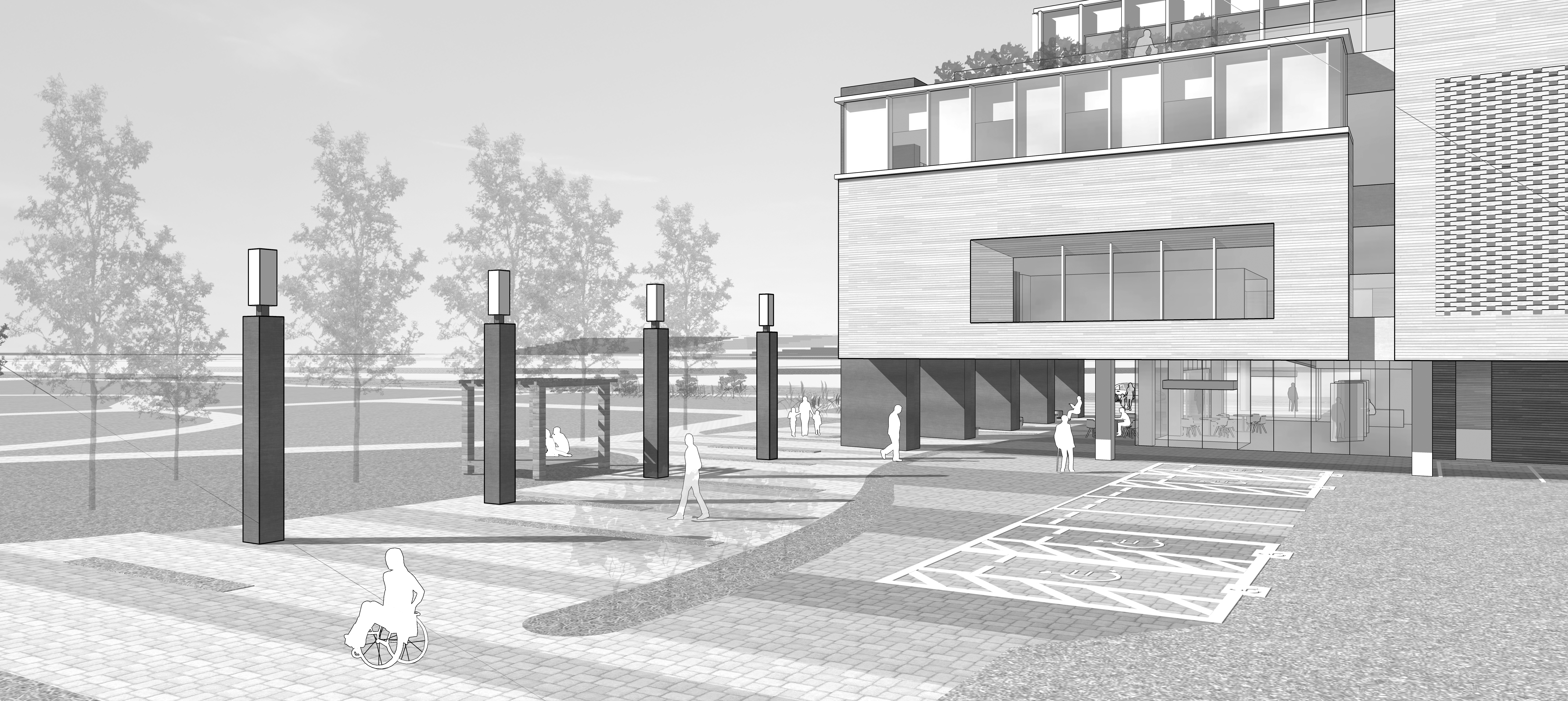 남동향으로 열린 입면은 풍부한 일조와 공원 조망을 확보하며, 기존 치매안심센터의 수직적 요소를 차용해 단지 전체에 시각적 통일성을 부여하였다. 숲과 햇살 속에서 이웃과 눈을 맞추며 살아가는 새로운 삶의 터전이 되도록 하였다.