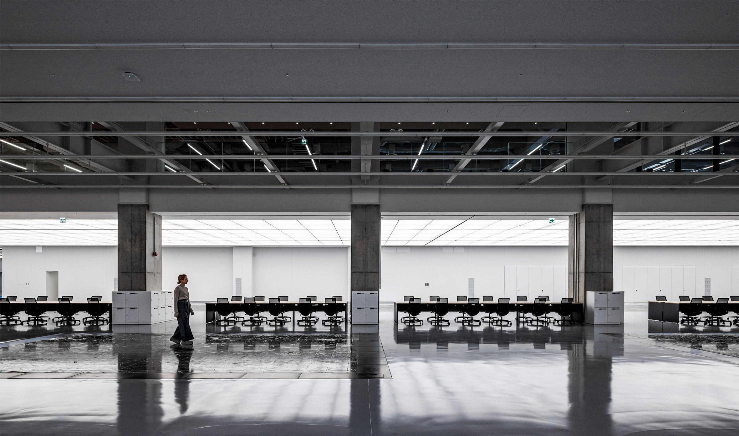 한 개 층이 약 7,000㎡ 규모이며 총 7개 층으로 이루어진 대규모 건물 안에 다양한 기능이 집약되어 있는 만큼, 곳곳에 개방적인 동선 공간을 배치하여 심리적·물리적으로 접근성이 높은 건물 구성을 실현했다.