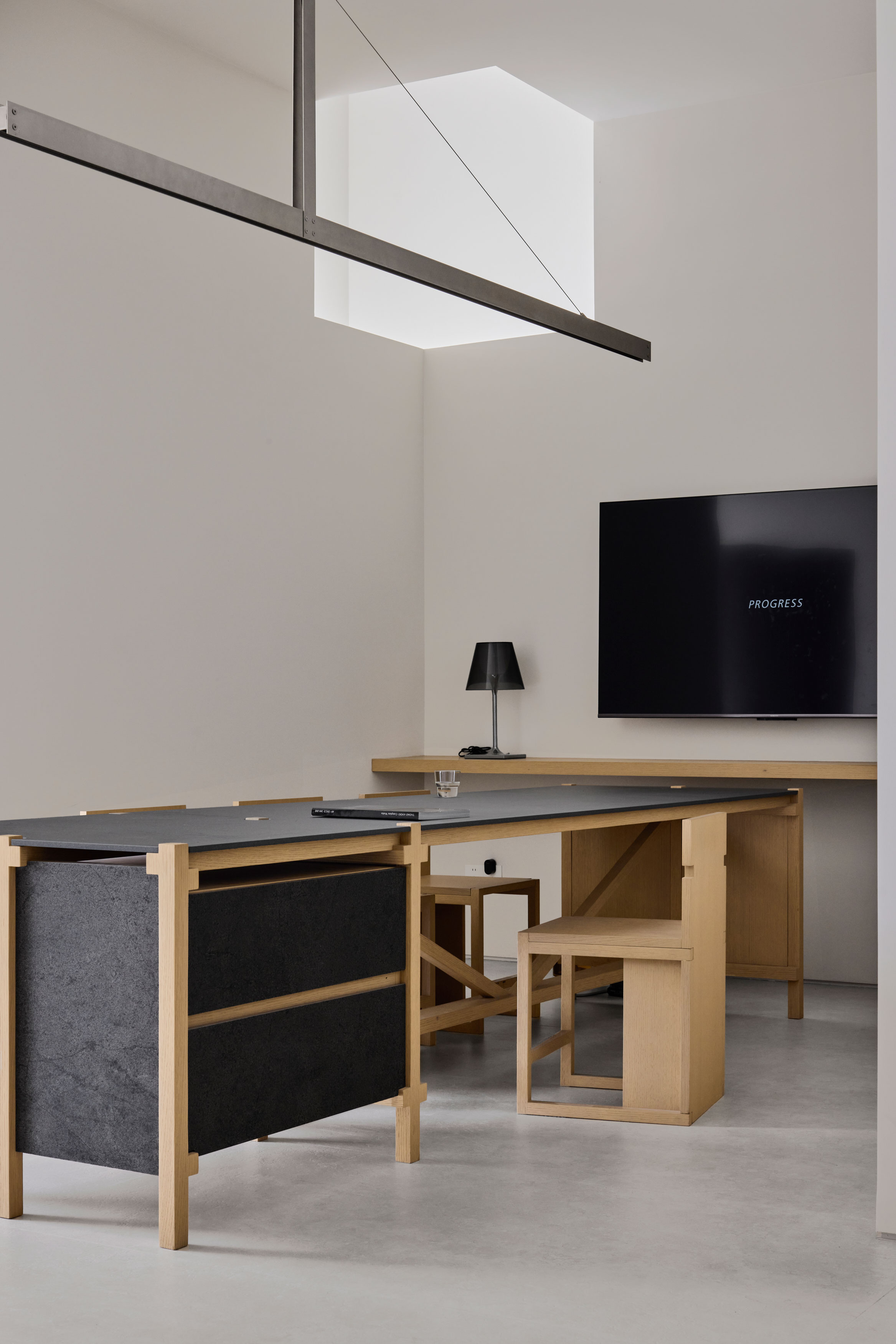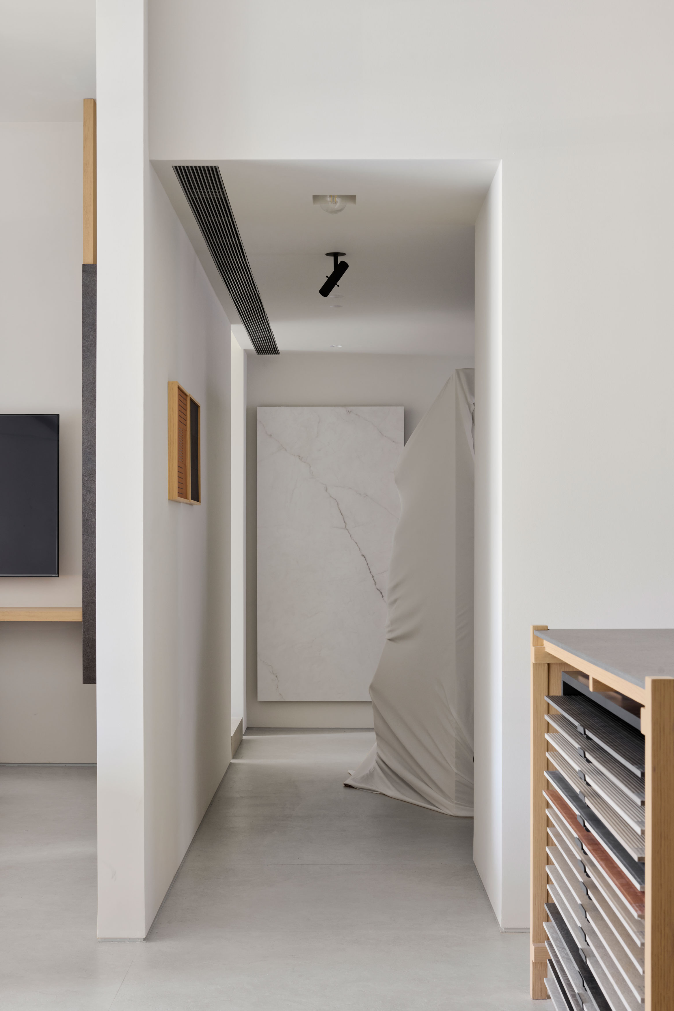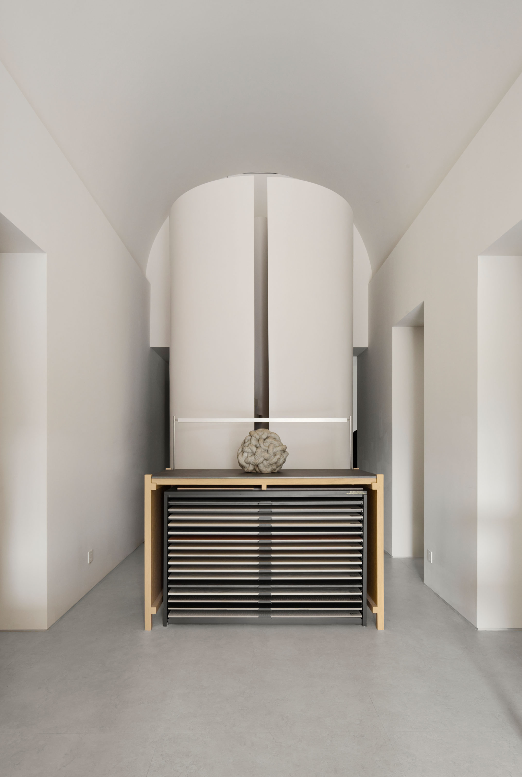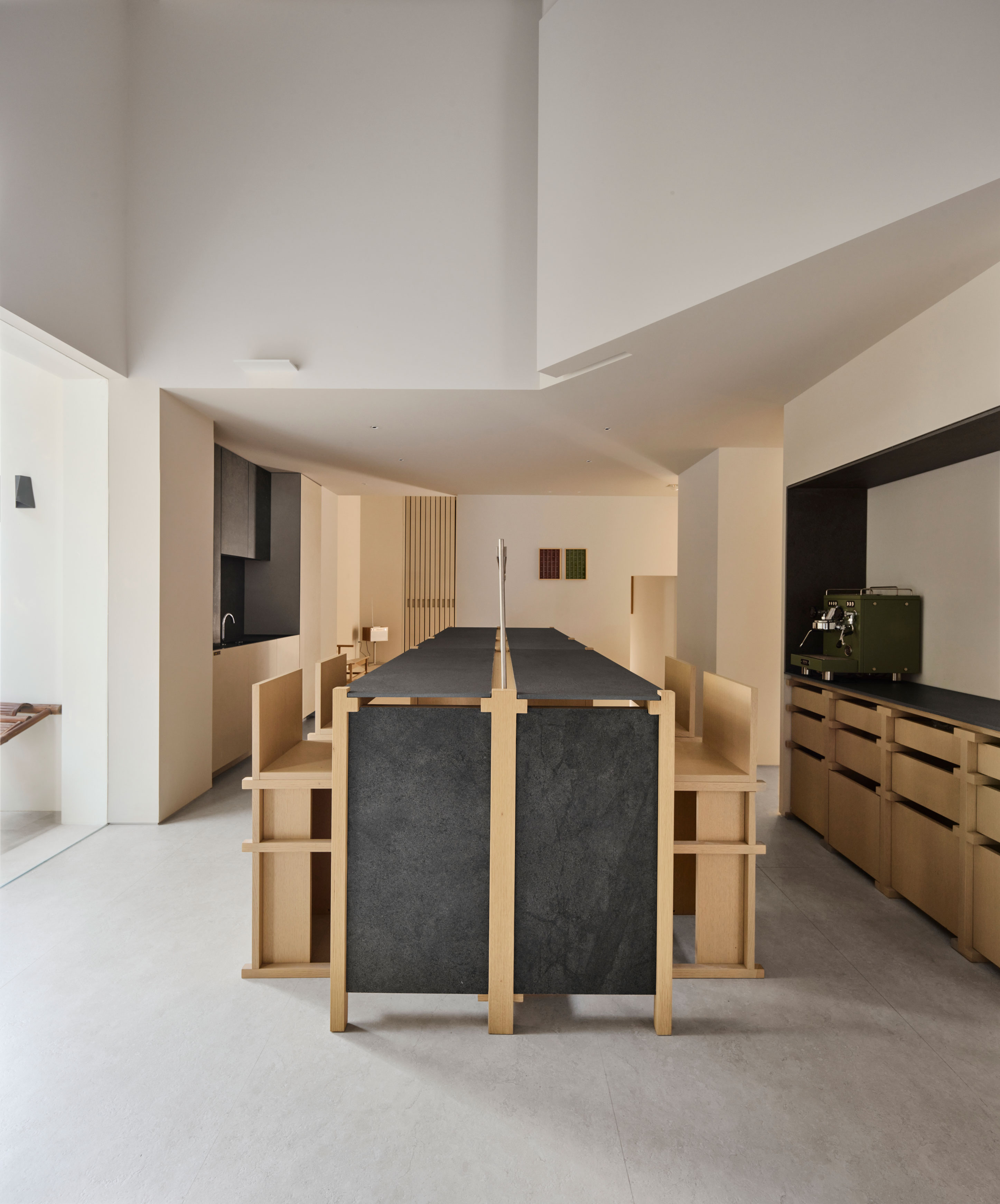 전시 시스템 또한 이 태도를 확장한다. 건축가는 파빌리온을 위해 맞춤형 디스플레이 시스템을 개발했다. 목재 구조와 세라믹 조각이 결합해 촉감을 더하고, 표면과 구조의 대화를 강화한다. 모듈형으로 확장 가능한 요소들은 ‘보관’과 ‘전시’ 사이를 유연하게 오가며, 브랜드의 변화에 따라 장기적으로 업데이트될 수 있는 장치를 제공한다.