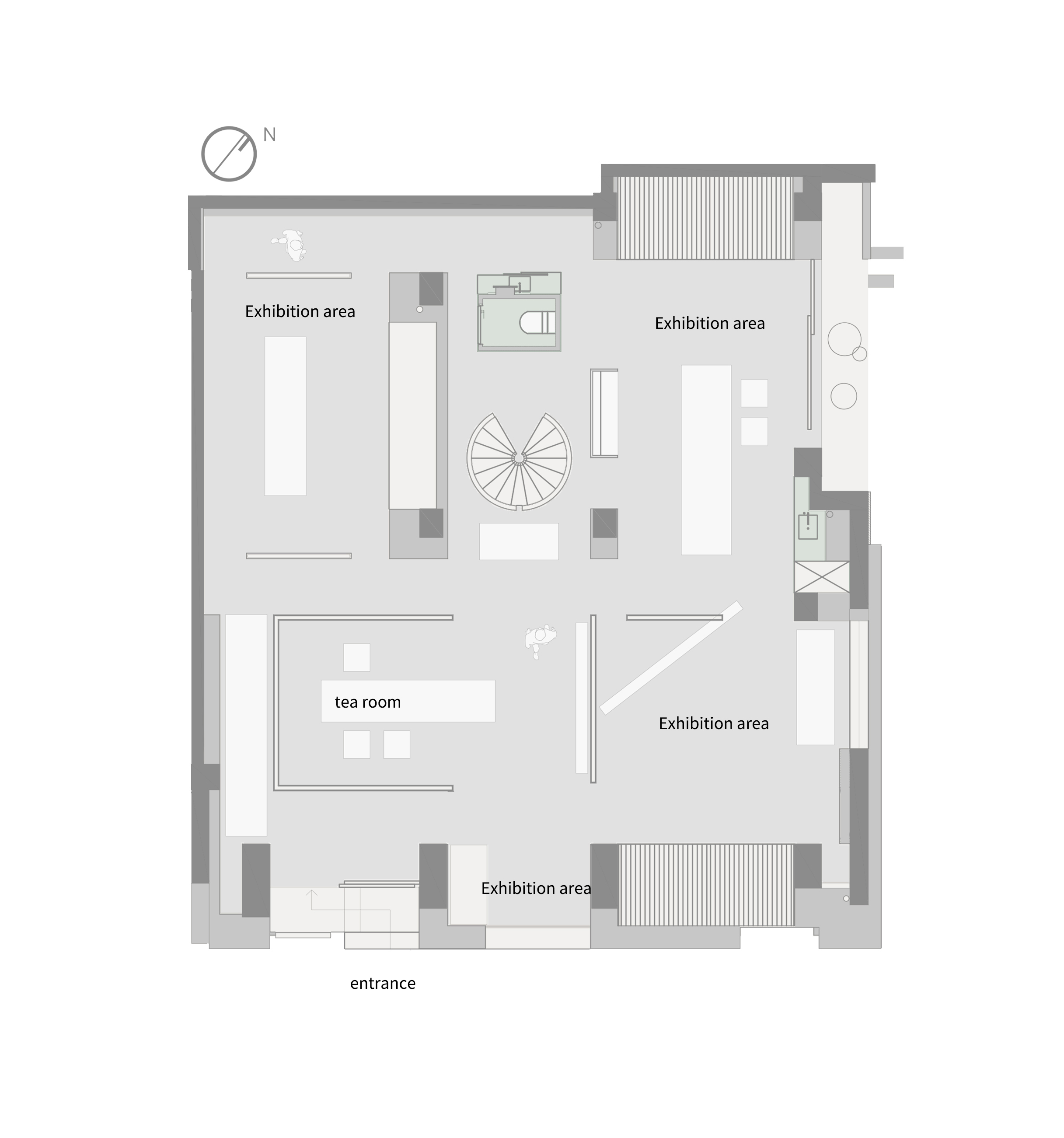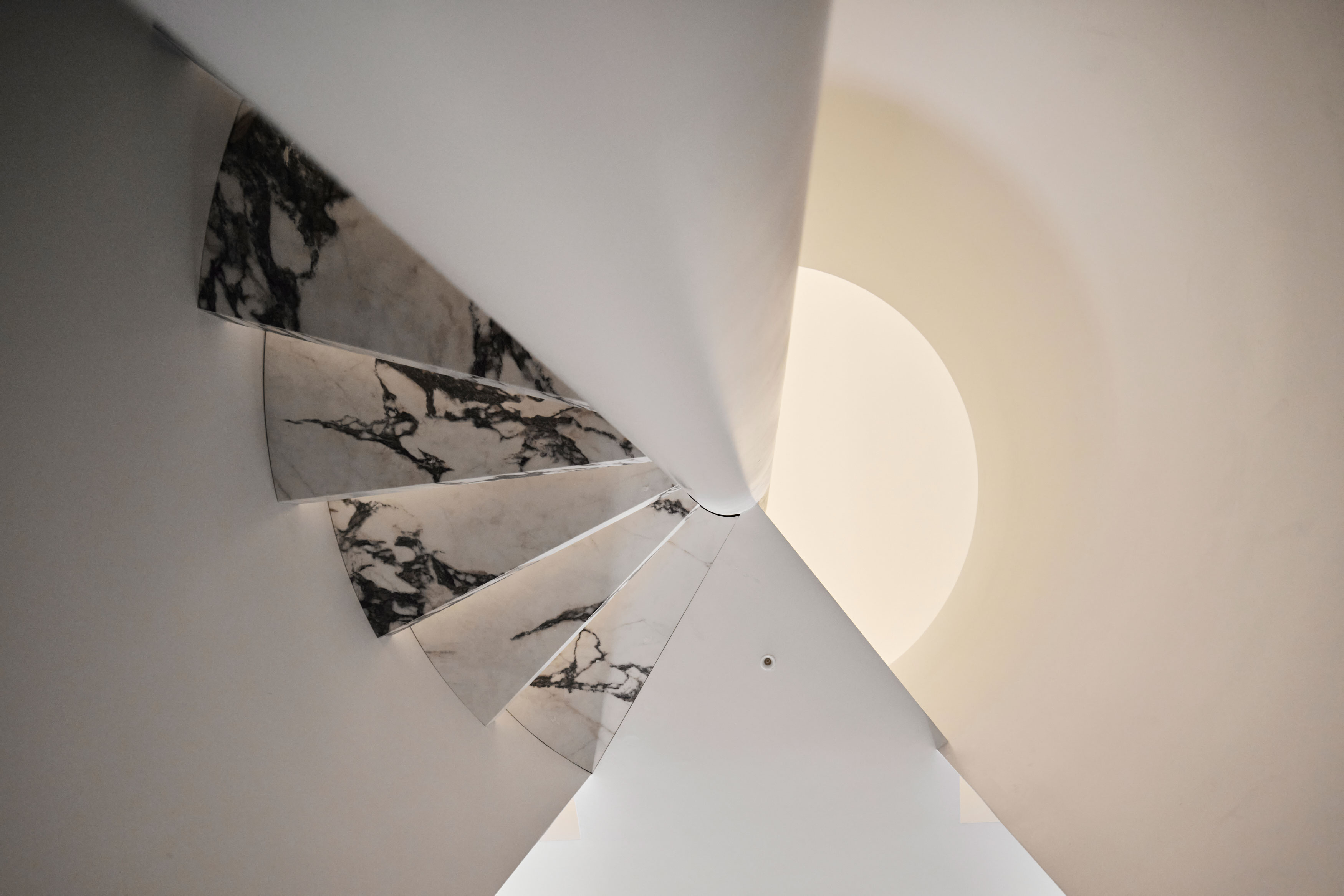 대지는 도시 블록의 끝에 놓여 시인성이 뛰어나다. 보통이라면 이 장점을 극대화해 시각적 우위를 점하려고 할 법한 자리다. 그러나 건축가는 그 반대로 계획했다. ‘시각적인 강조’ 대신 ‘조용한 존재감’을 선택한다. 파사드는 아이콘처럼 각을 세우기보다, 세밀하게 조율된 자유곡선의 기하가 겹치며 부드럽게 표현된다. 과장된 형태나 인공적인 재료를 피한 덕분에, 이 파빌리온은 도시의 일상적 소란 속에서 오히려 시를 읊듯 가볍게 서 있다.