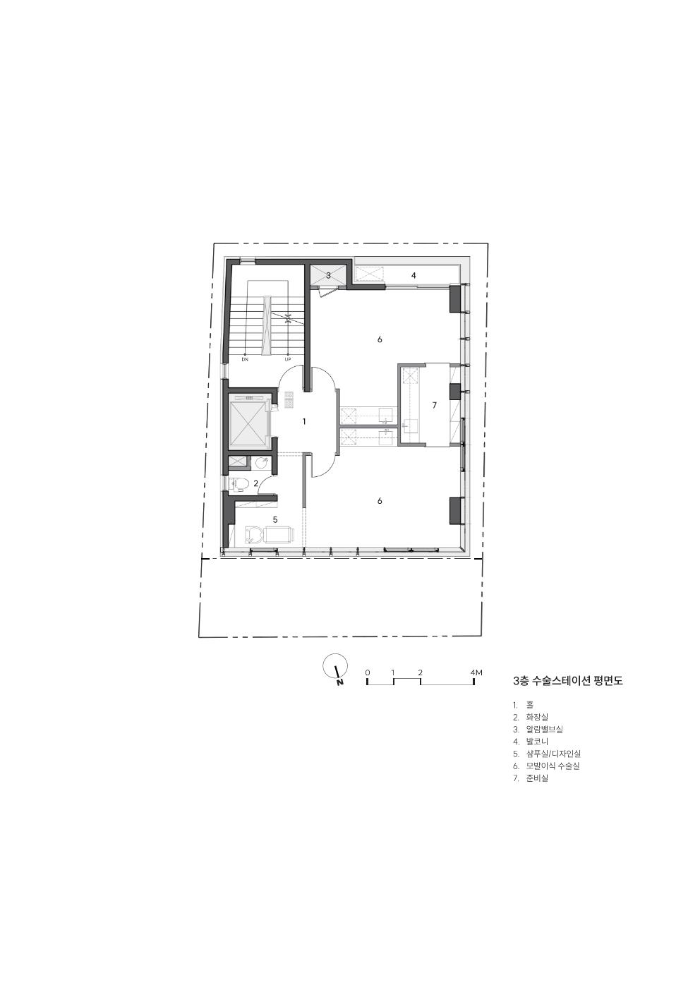 지상 2층과 3층은 모발이식 수술실과 소독실, 의료진 휴게 공간으로 구성되며, 5층과 6층은 모발 및 피부 관리 시술 공간으로 계획됐다. 최상층인 7층은 VIP 휴게 공간으로 구성해 가장 우수한 조망을 확보할 수 있도록 한 것이 특징이다.