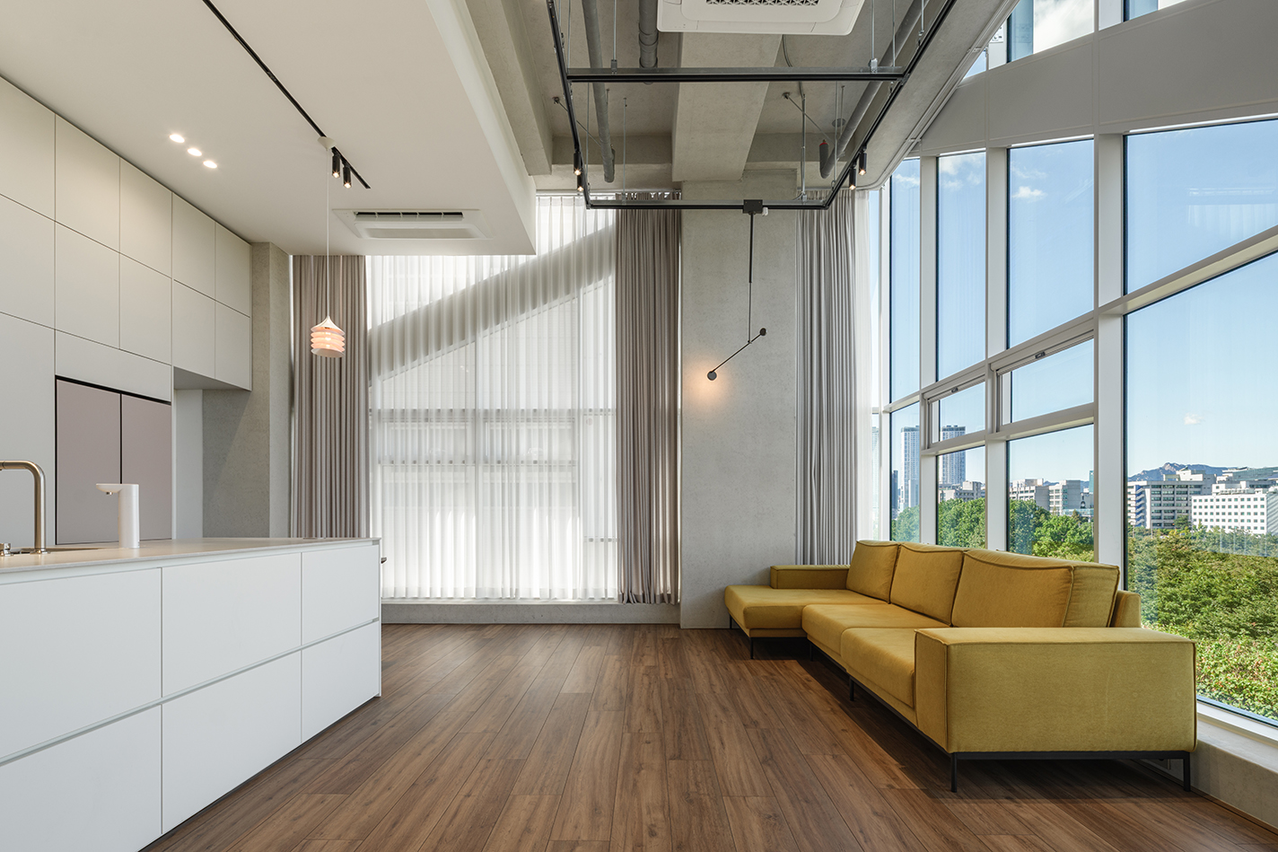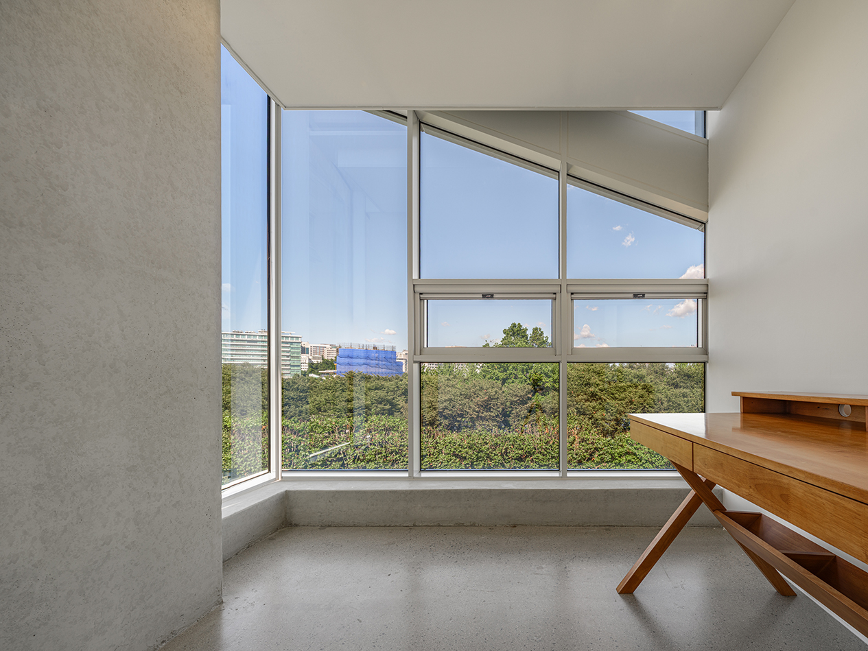 총 6개 층 중 대부분은 3.5m의 층고를 확보하였으며, 4층과 7층은 북측 방향으로 약 4.5m의 층고를 계획하여 공간감과 개방감을 극대화했다. 이와 같이 층고의 변화를 통해 건축가는 제한된 대지 조건 속에서도 조망과 공간 경험을 적극적으로 확보하고자 했다.
