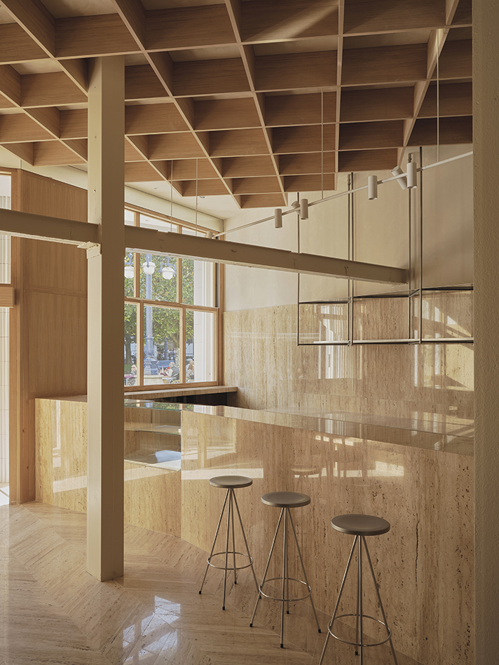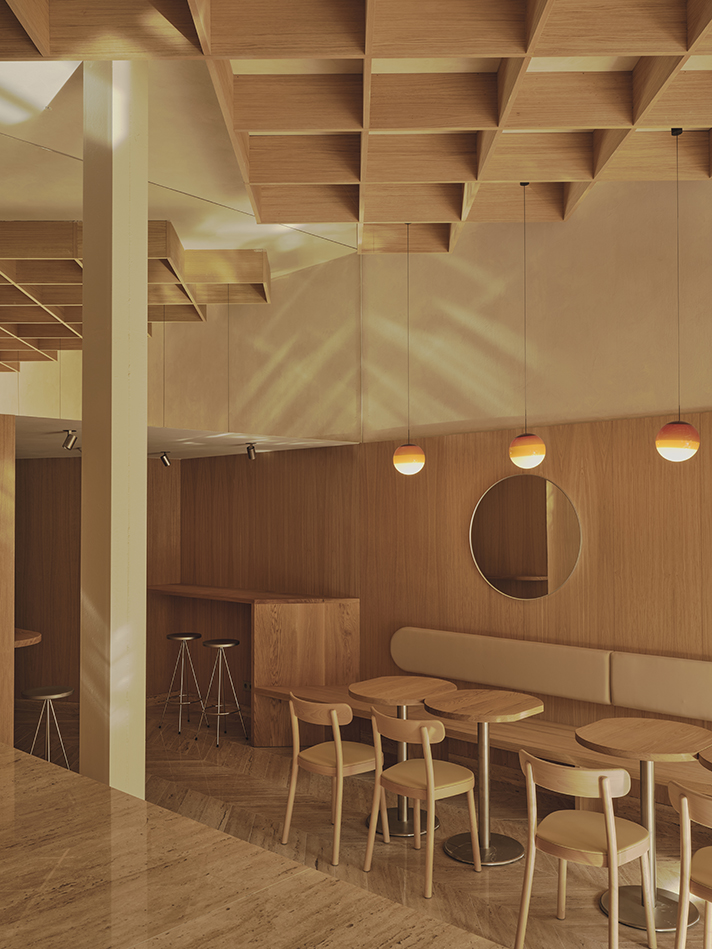 설계의 핵심은 브랜드의 정체성을 직접적으로 드러내기보다, 추상적이고 절제된 방식으로 공간에 스며들게 하는 데 있었다. 브랜드가 강조하는 ‘자연스러운 재료’와 인위적 장식을 배제한 색채 감각을 공간 언어로 번역했다.
