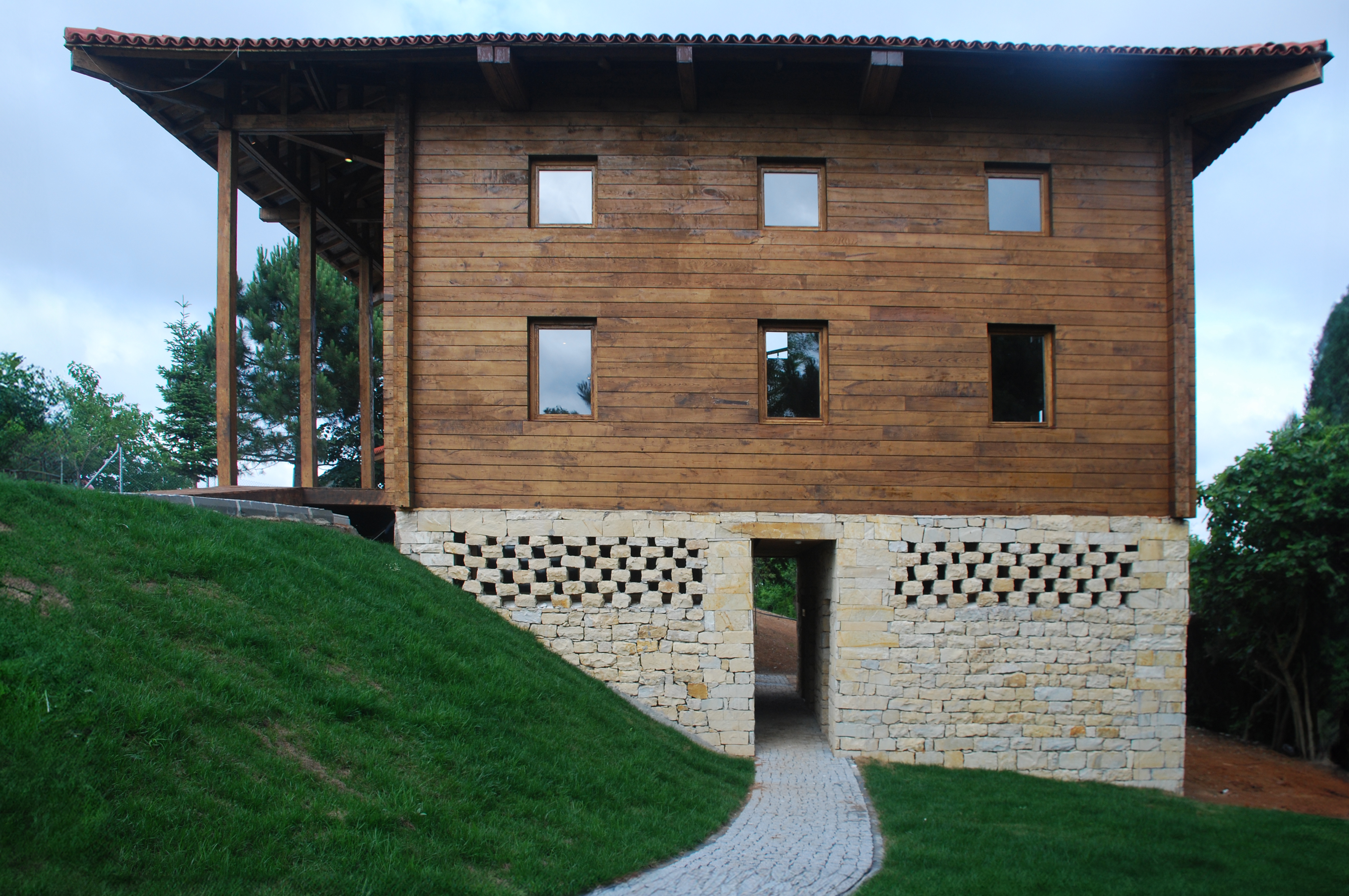 세 겹의 적층 목재 요소는 ‘kurtboğazı’ 이음으로 모서리를 고정하고, 창 모서리에는 수직 스템 바를 설치해 지붕까지 구조적 안정성을 확보했다. 지붕은 두 개의 주요 트러스와 용마루 위에 얹혀 전통 터키식 기와로 마감되었다.
