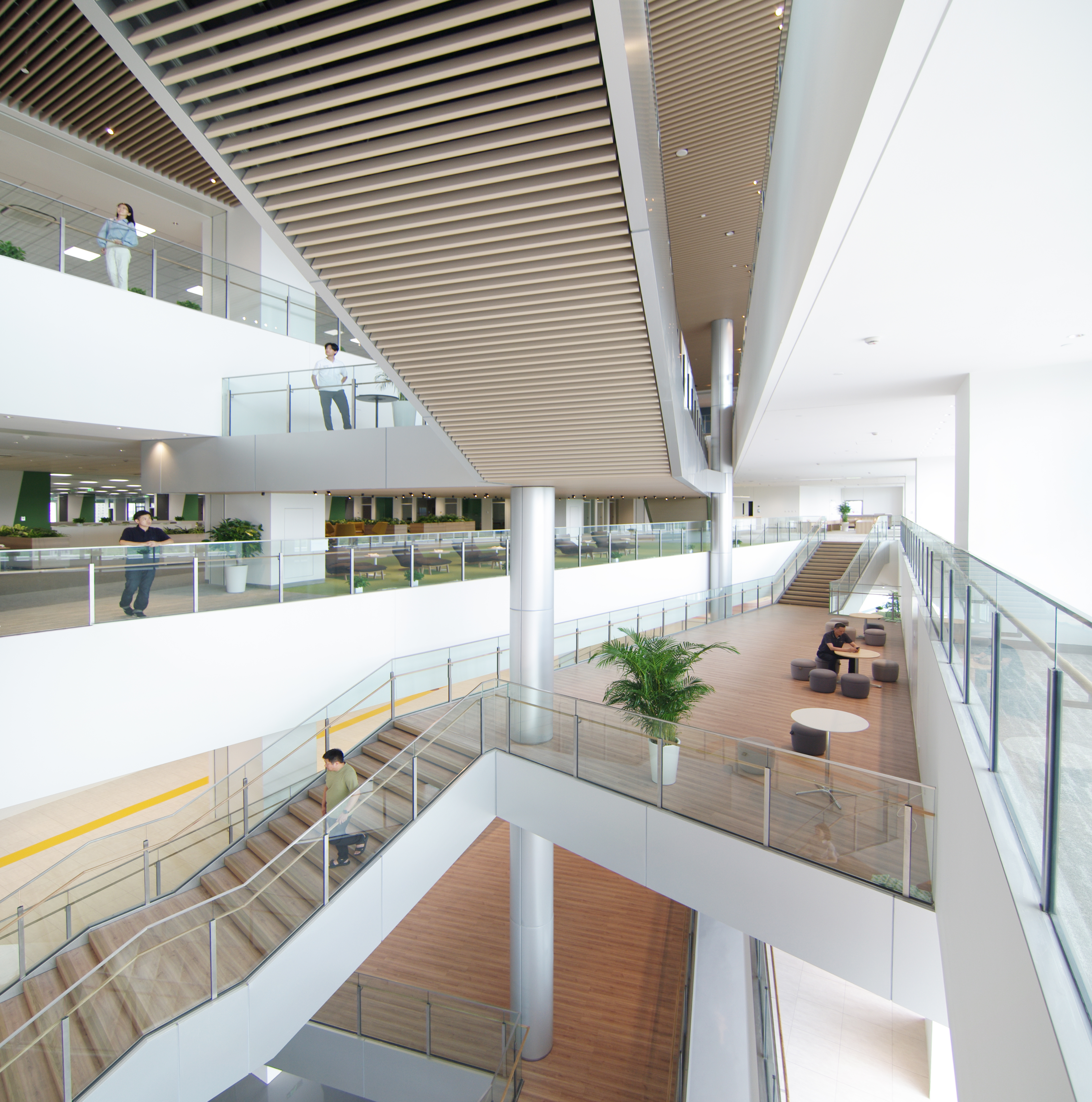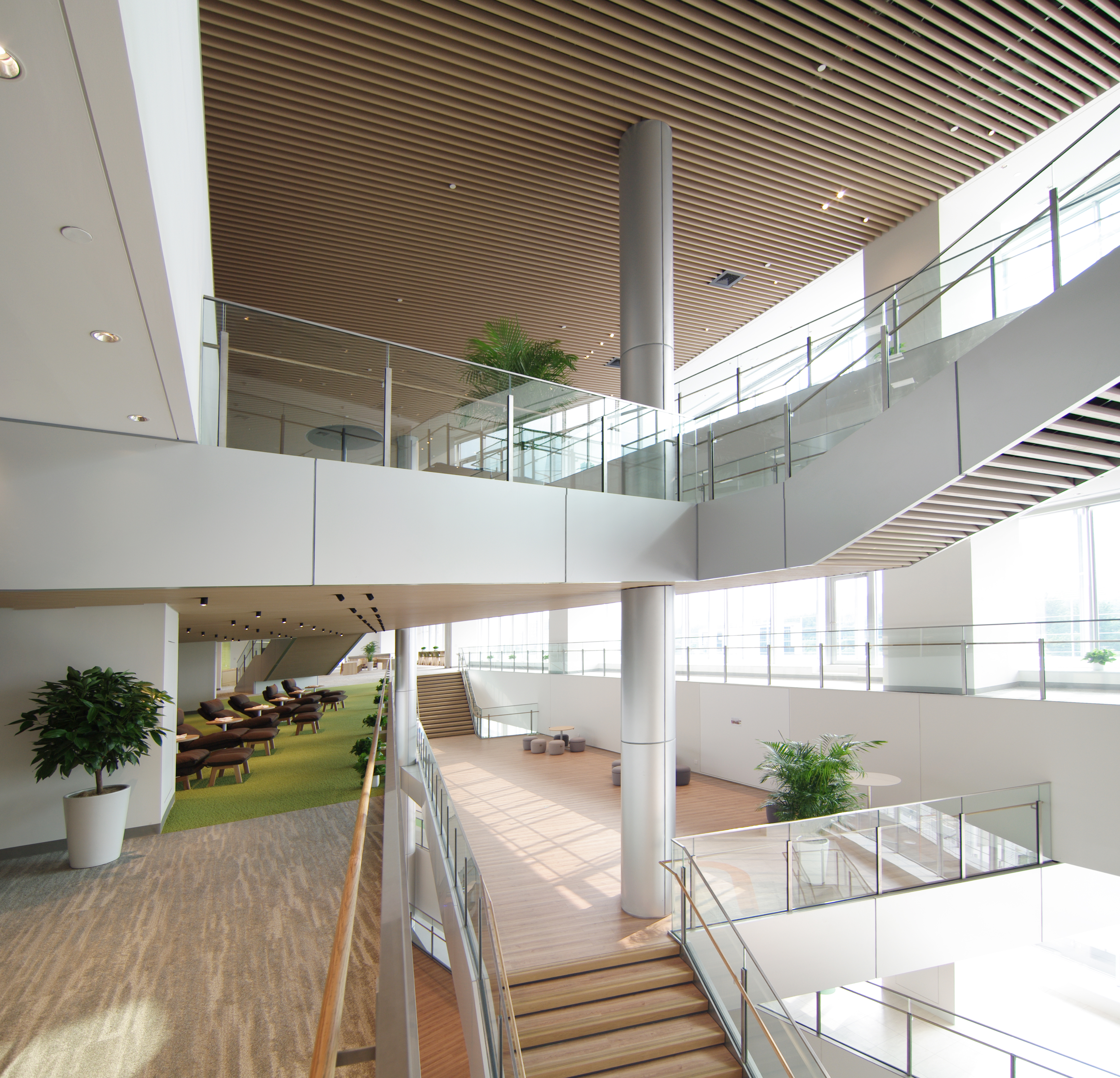 층을 연결하는 계단의 중간참을 활용한 아트리움 공간은부서와 연구 영역을 초월한 협업을 촉진하는 공동 가치 창조를 위한 공간 ‘이노베이션 보이드’이다자연스러운 동선 속에서 교류를 유도하고의도적으로 엇갈리게 배치한 평면 구성을 통해 시선이 교차되며층고차로 리듬감을 부여한 다양한 공간을 형성함으로써각자가 마음에 드는 자리를 선택하고 자유롭게 모일  있는 편안하고 개방적인 분위기의 공간을 지향했다.