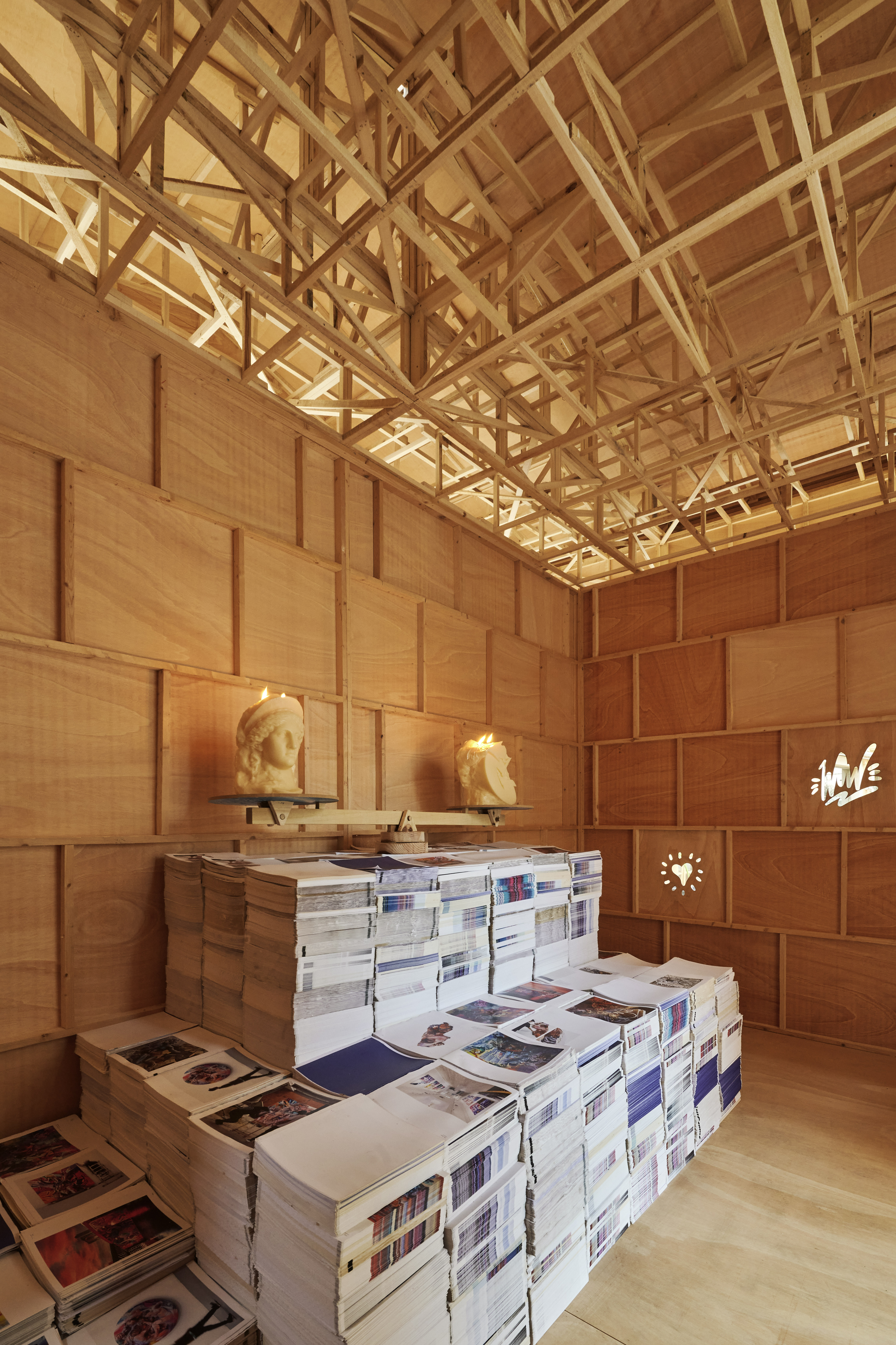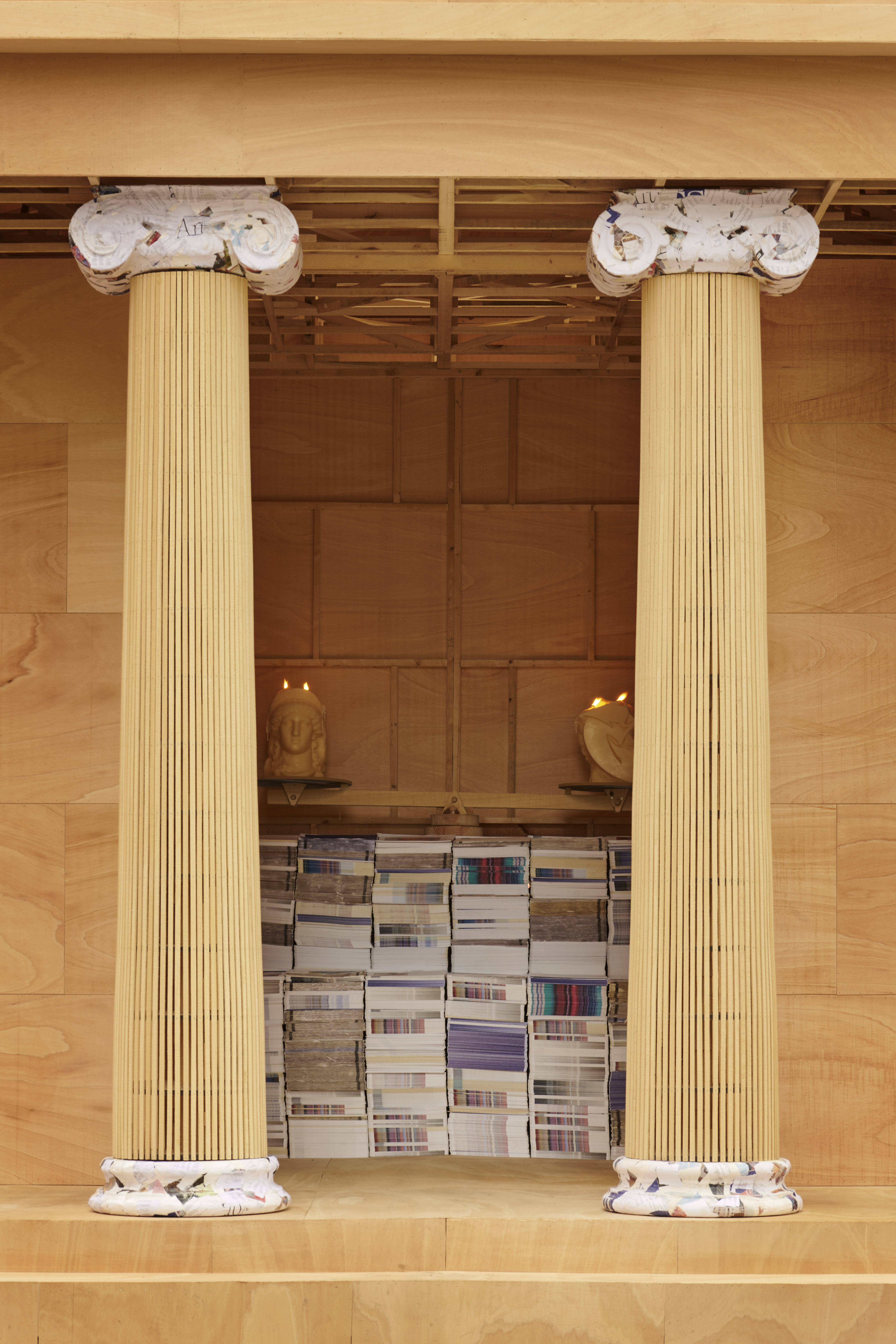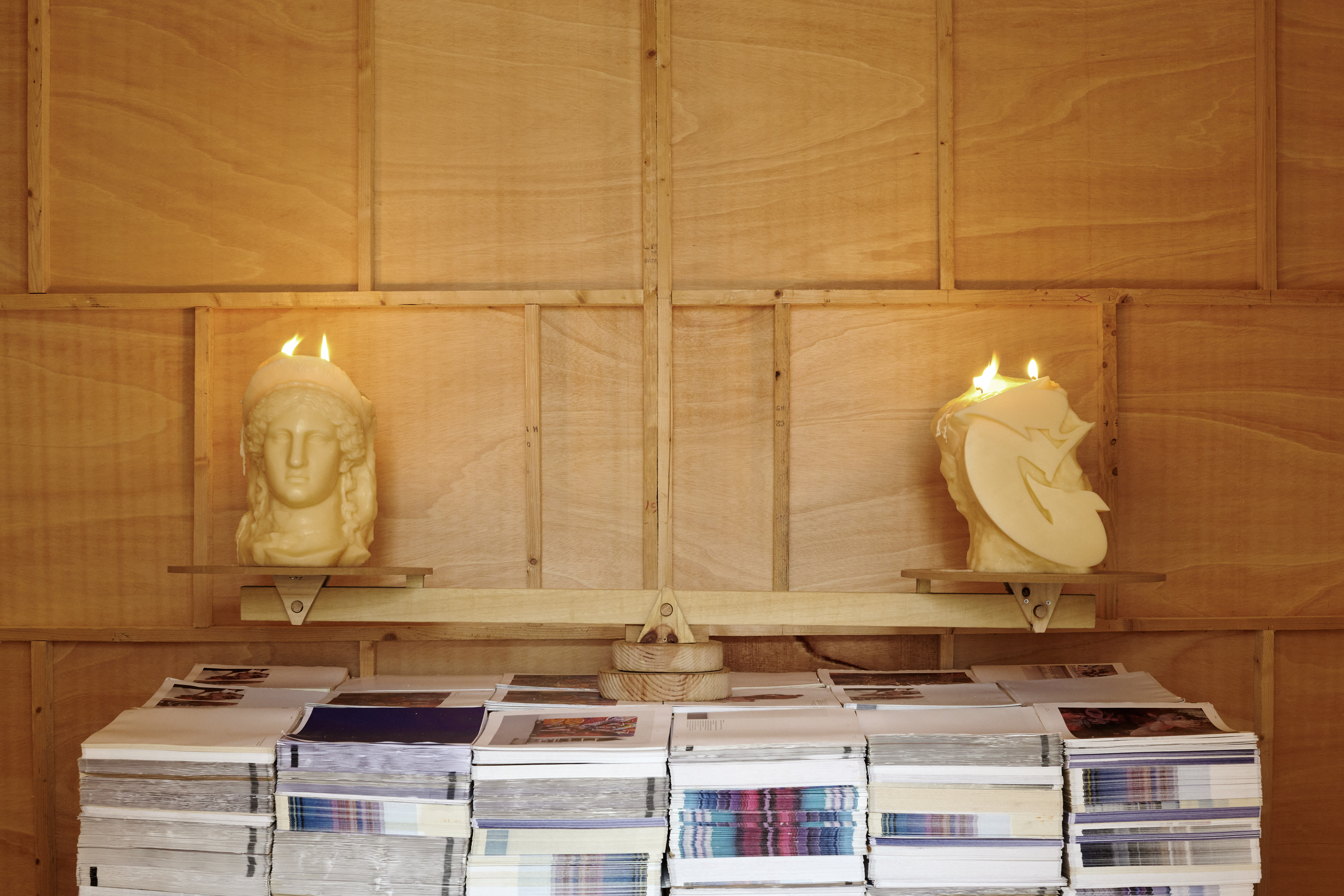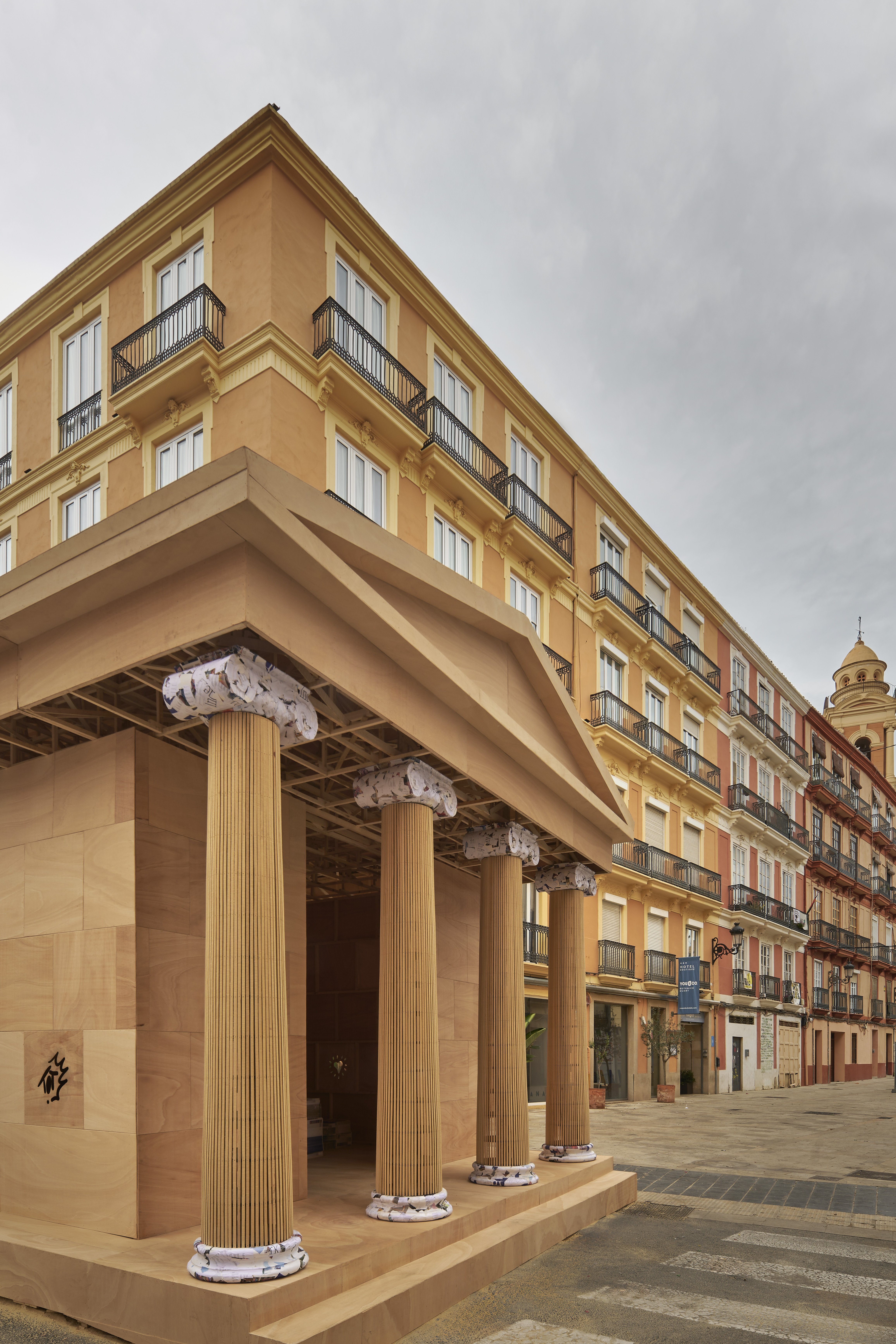 구조물은 아테네의 ‘아테나 니케 신전’을 참조한 이오니아식 고전 신전 형태를 취한다. 이는 고전 조형과 그래피티 시각 언어를 결합해온 피치아보의 작업 세계를 상징적으로 드러낸다. 신전 내부에는 2024년 출간된 도서 Our Odyssey의 인쇄 후 남은 종이로 제작된 제단이 설치되었다. 그 위에는 바르셀로나의 전통 브랜드 Cerabella와 협업한 두 개의 조각적 밀랍 초가 균형을 이루며 놓였다. 하나는 ‘고전 미술’을, 다른 하나는 ‘그래피티’를 상징한다. 이는 서로 다른 창조적 언어의 긴장과 균형을 시각화한 장치다.