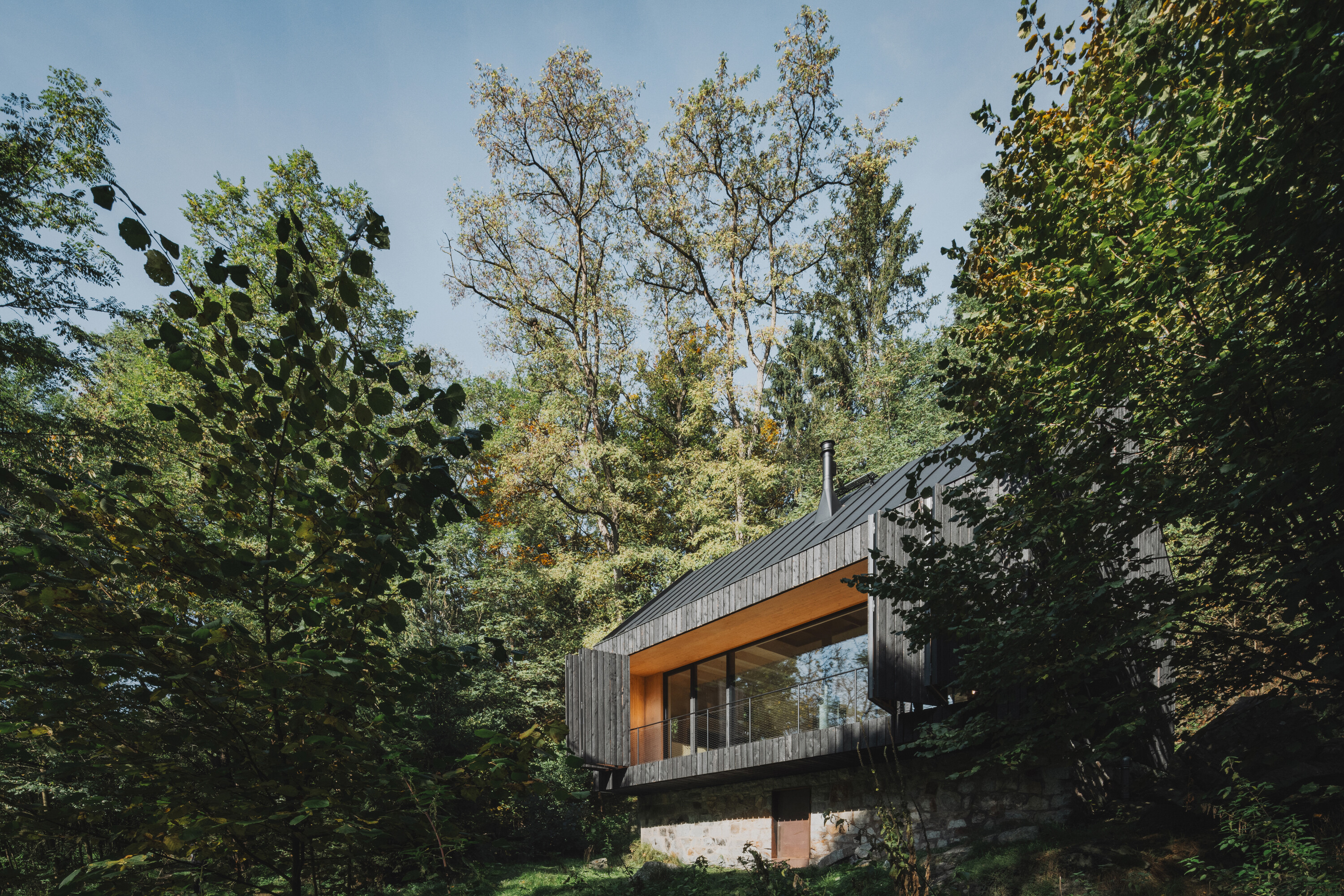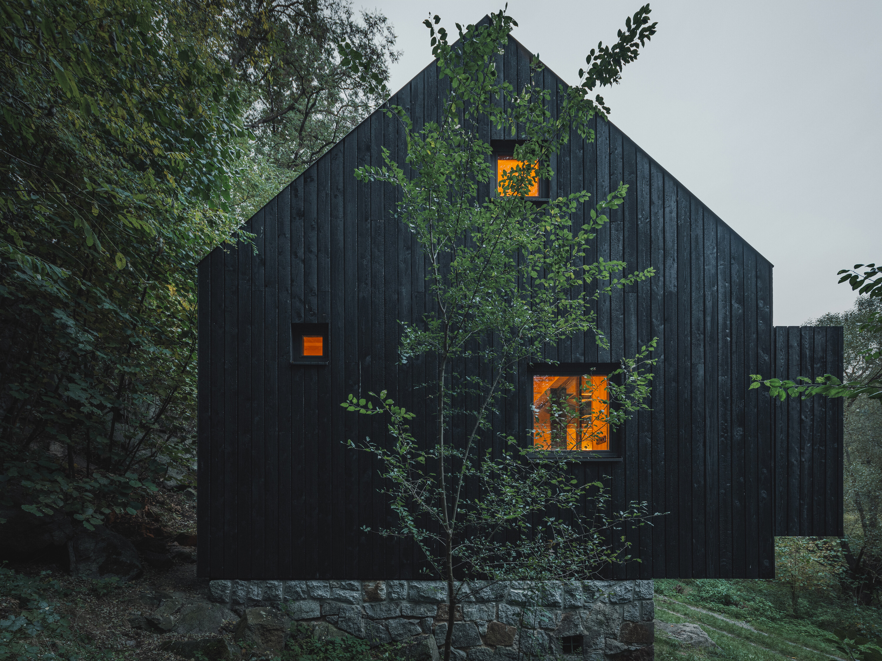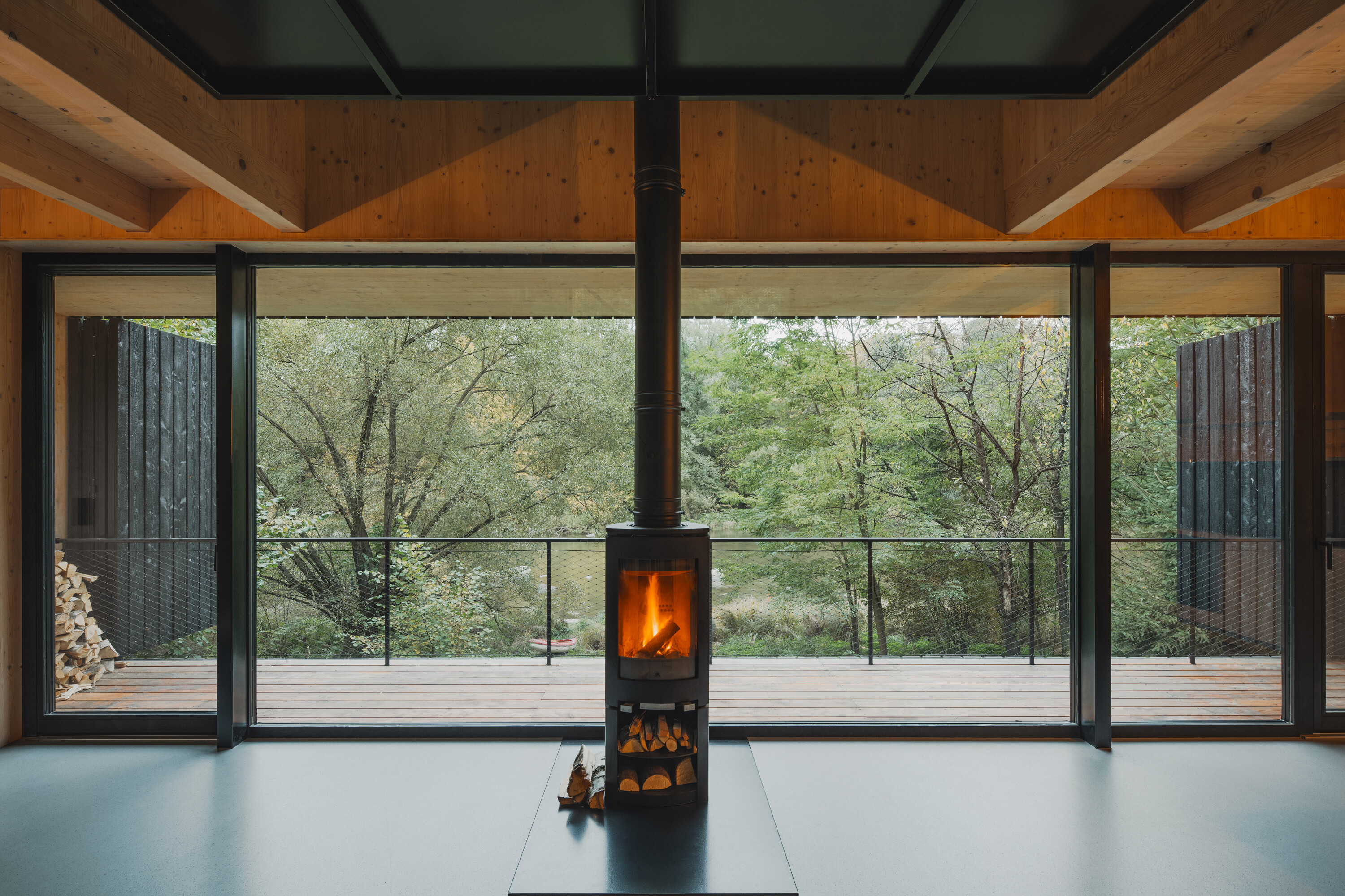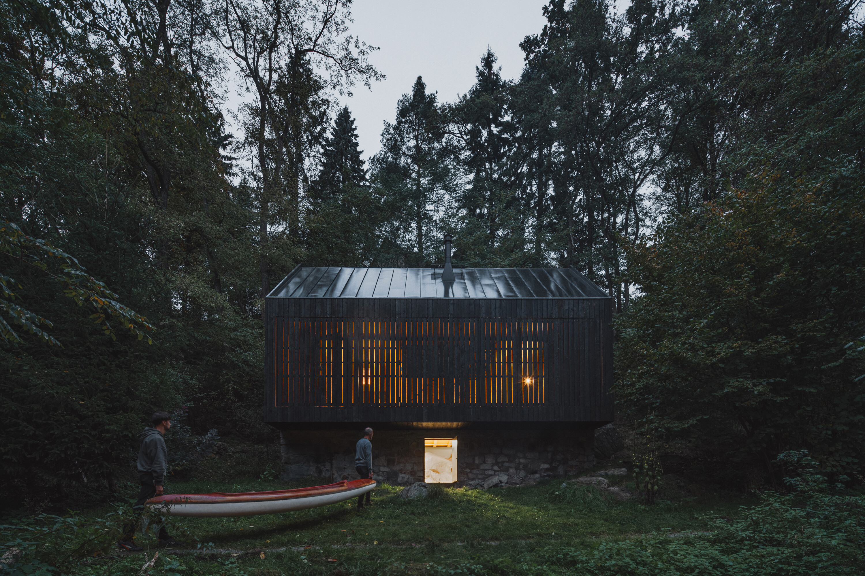 사자바(Sázava) 강변에 자리한 이 오두막은 화재로 소실된 기존 건물을 대체해 같은 자리에 새롭게 세워졌다. 불길 이후 남은 것은 단단한 석조 기단뿐이었다. 새 건축물은 이 기단을 자연스럽게 흡수하며, 홍수로부터 보호 기능을 확보하는 동시에 강을 향한 조망의 기반으로 삼았다. 기단 위에 선 오두막은 일상의 속도를 잠시 멈추게 하는 장치처럼 작동한다.