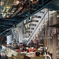 The combination of the desk and the tree has become the interior landscape of the entire space and also forms an echo with the green outside to reduce the tension in the office. The entire wall of the shelves are unwillingly boring, in a practical framework, resulting in a wave of fluctuations, like a cliff, as the slope.