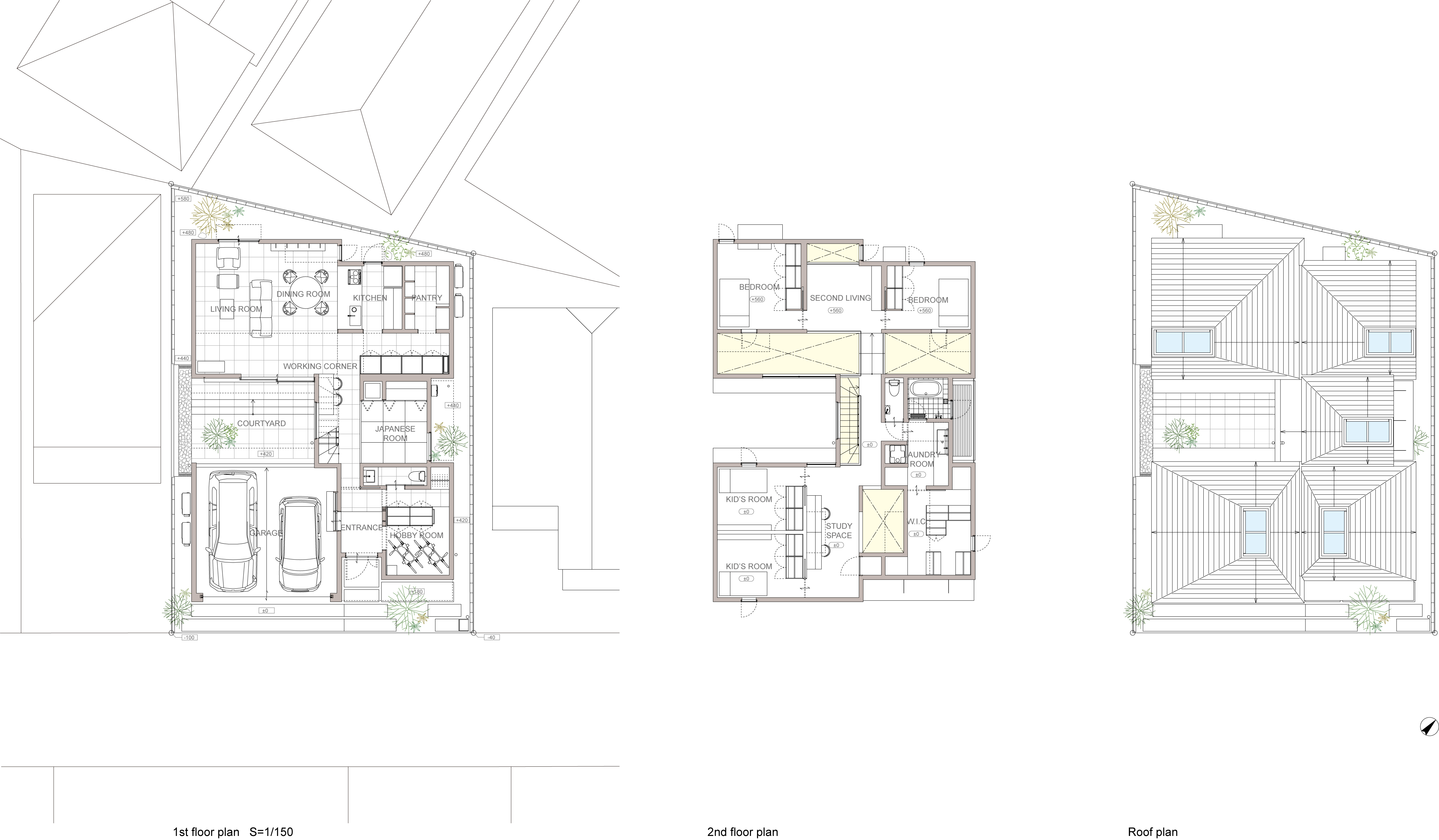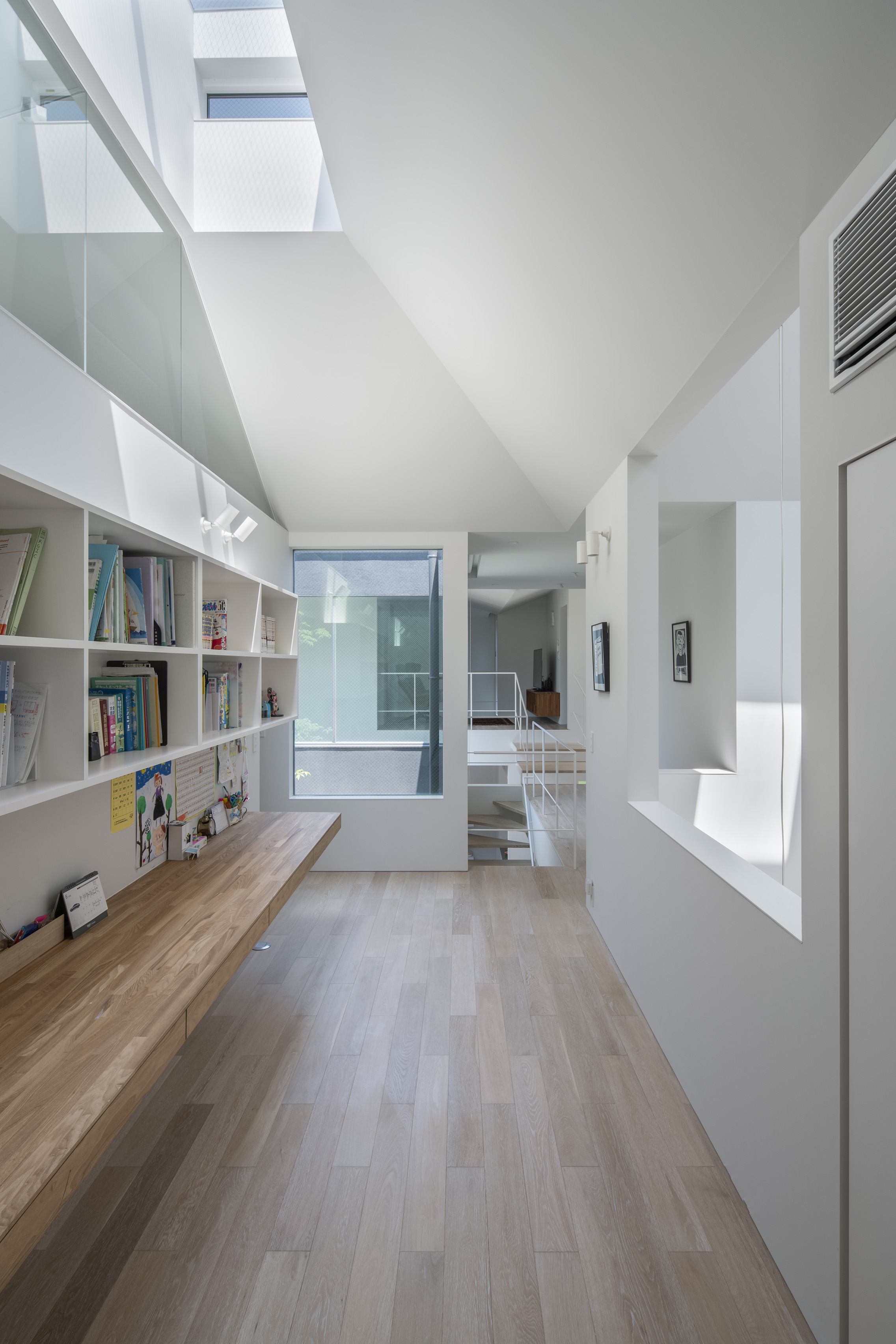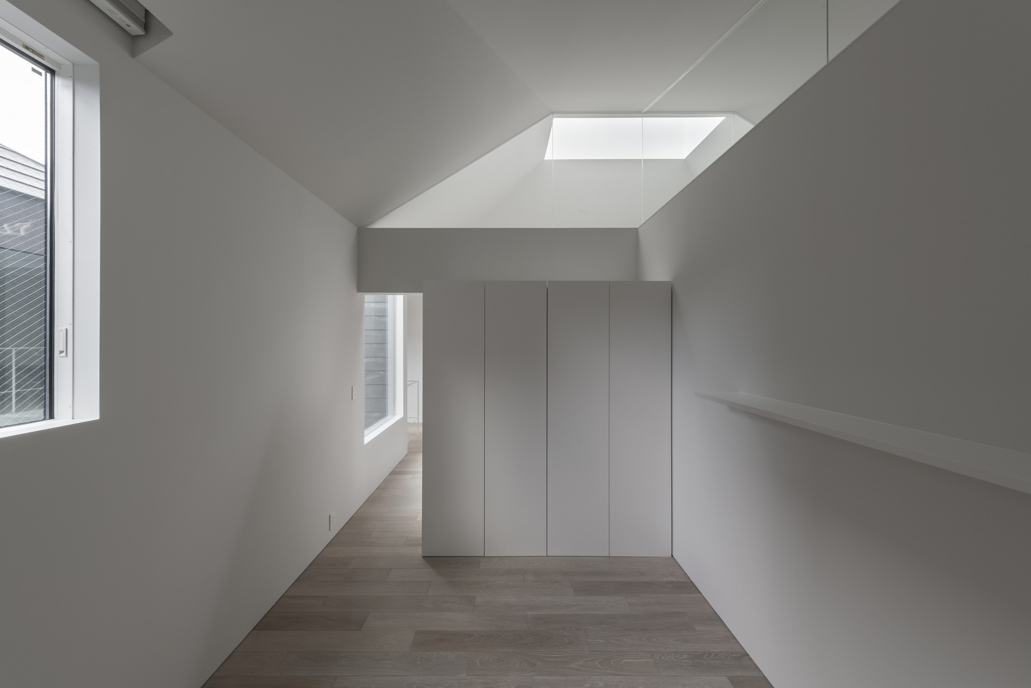 House in Chikusa is a new-build home, located in Nagoya, Japan. The site sits within a dense urban context and is surrounded by residential buildings, making this a challenging plot to consider a design that is outward-looking to the city. The architecture responds to this restrictive setting with an intricate massing consisting of five ‘boxes’ with a diverse range of openings that carefully bring in daylight, air and views into the house without disrupting the neighbouring landscape. These ‘boxes’ are connected to provide continuous spaces, ensuring an internal environment that is full of choices. This encourages each inhabitant to interpret the spaces differently and select their own comfortable distance between each other through dwelling experience.