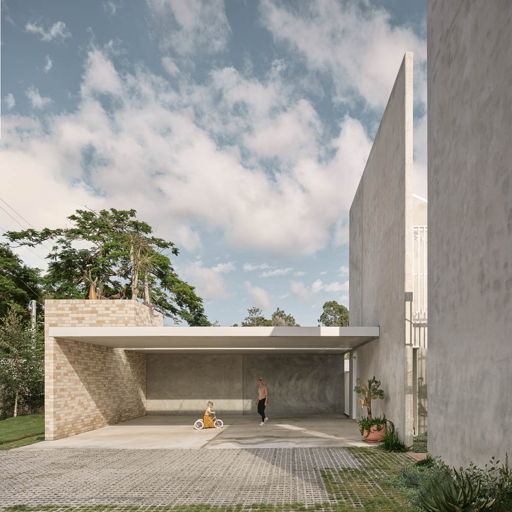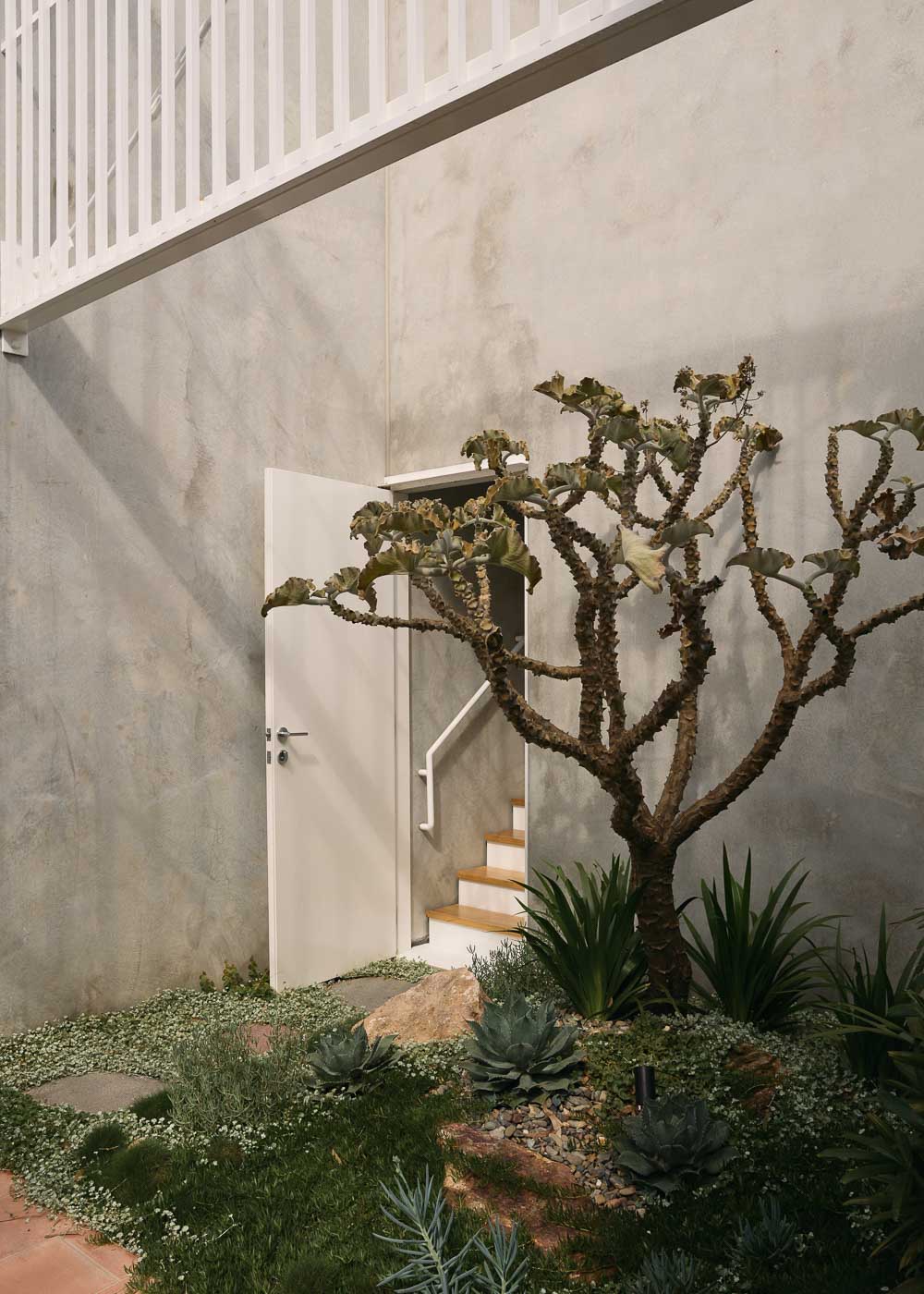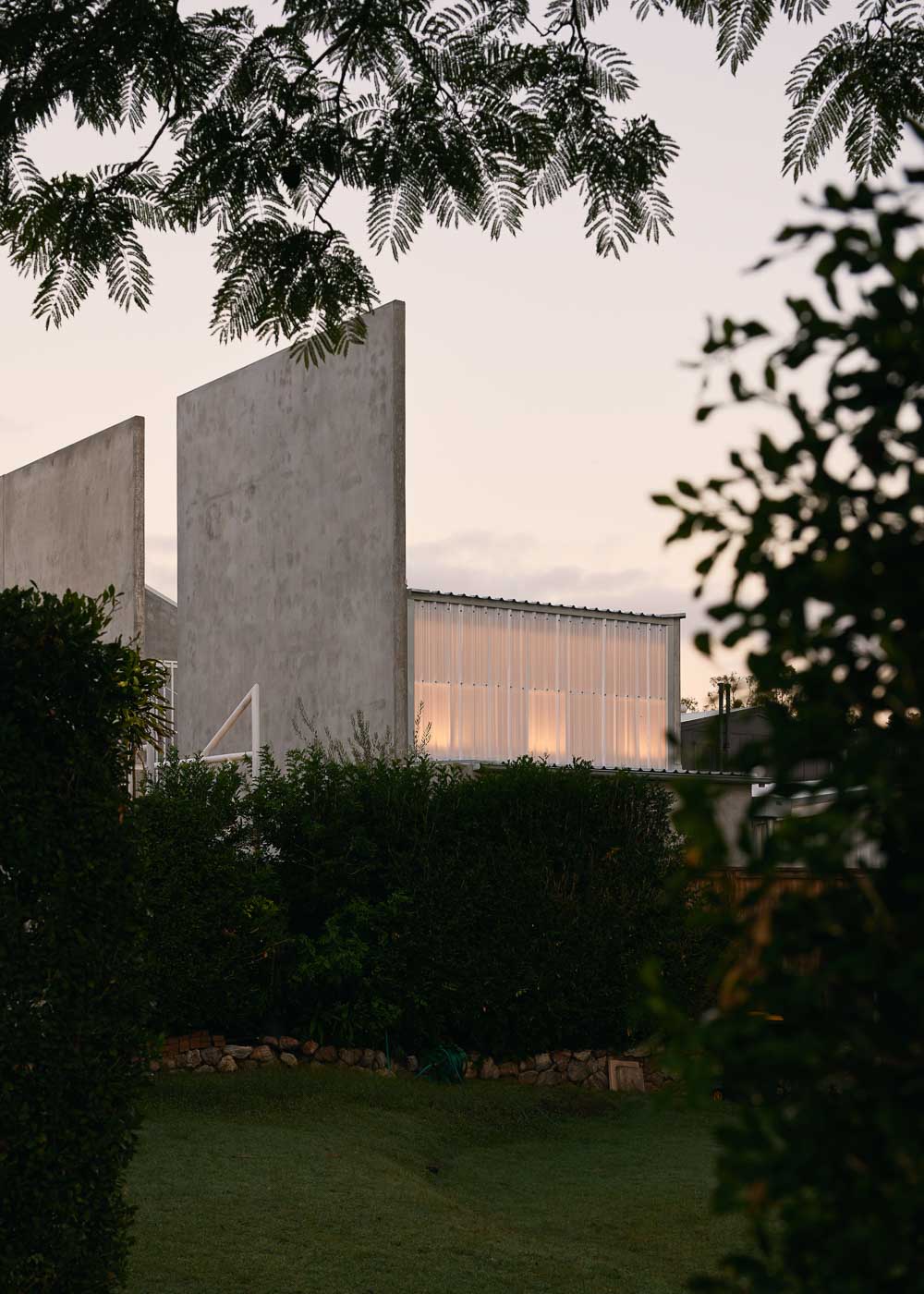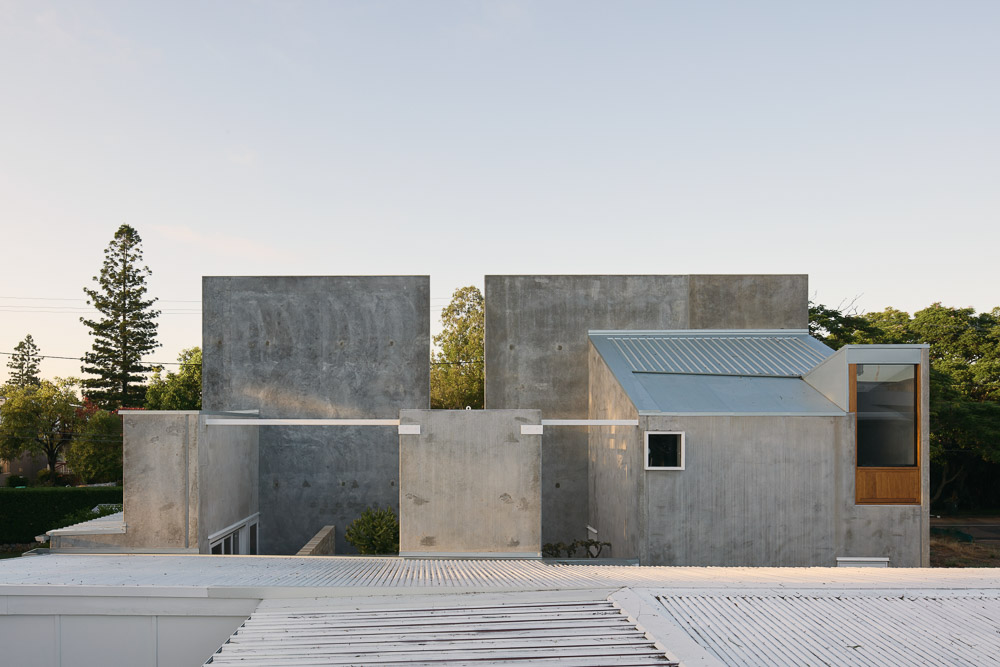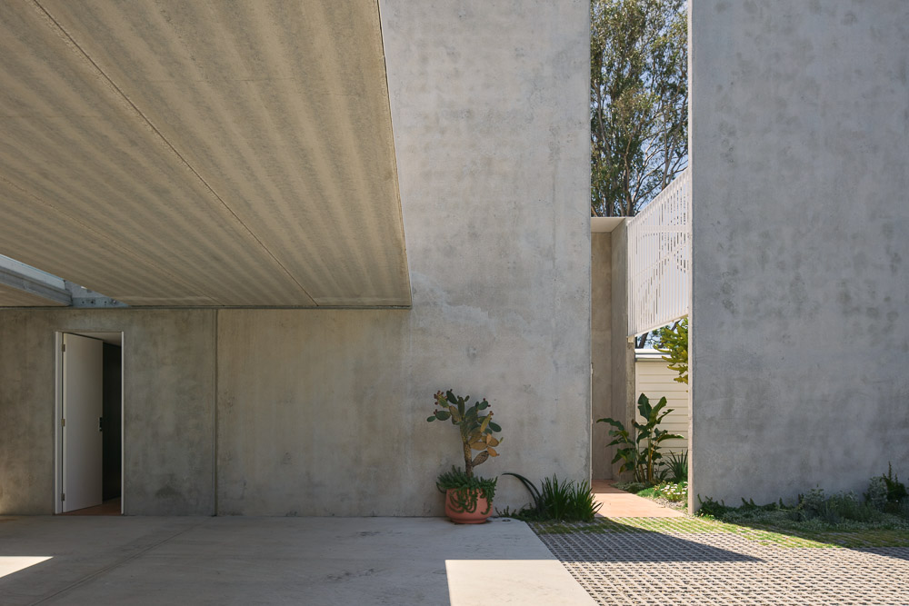 건축의 초기 의도로 돌아가 벽에 구멍을 어떻게 만들지 고민했다. 형태를 이용할 것인지, 구조를 분리할 것인지 고심 끝에 프리캐스트와 틸트업 콘크리트 패널을 사용해 두 요소를 분리하여 처리했다. 평면도와 입면도에서 뚜렷하게 볼 수 있으며, 지붕이 현관 너머로 천창이 되도록 뻗어있다. 입면에서 정원 벽은 분리되어 기존의 집으로 들어가는 새로운 출입구를 만들어냈다.