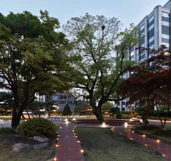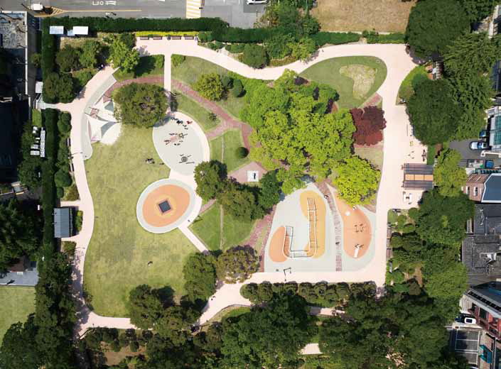 For Wonseo Park playground, the architects created a central space around a protected locust tree that symbolizes the long history of Jongno-gu, and proposed a land art design, setting the roots of the tree as the design motif. Through land art design the design concept, distancing and securing space between play areas, and stepless play areas can be realized without removing the trees growing in the shallow soil at the top of the existing parking lot.